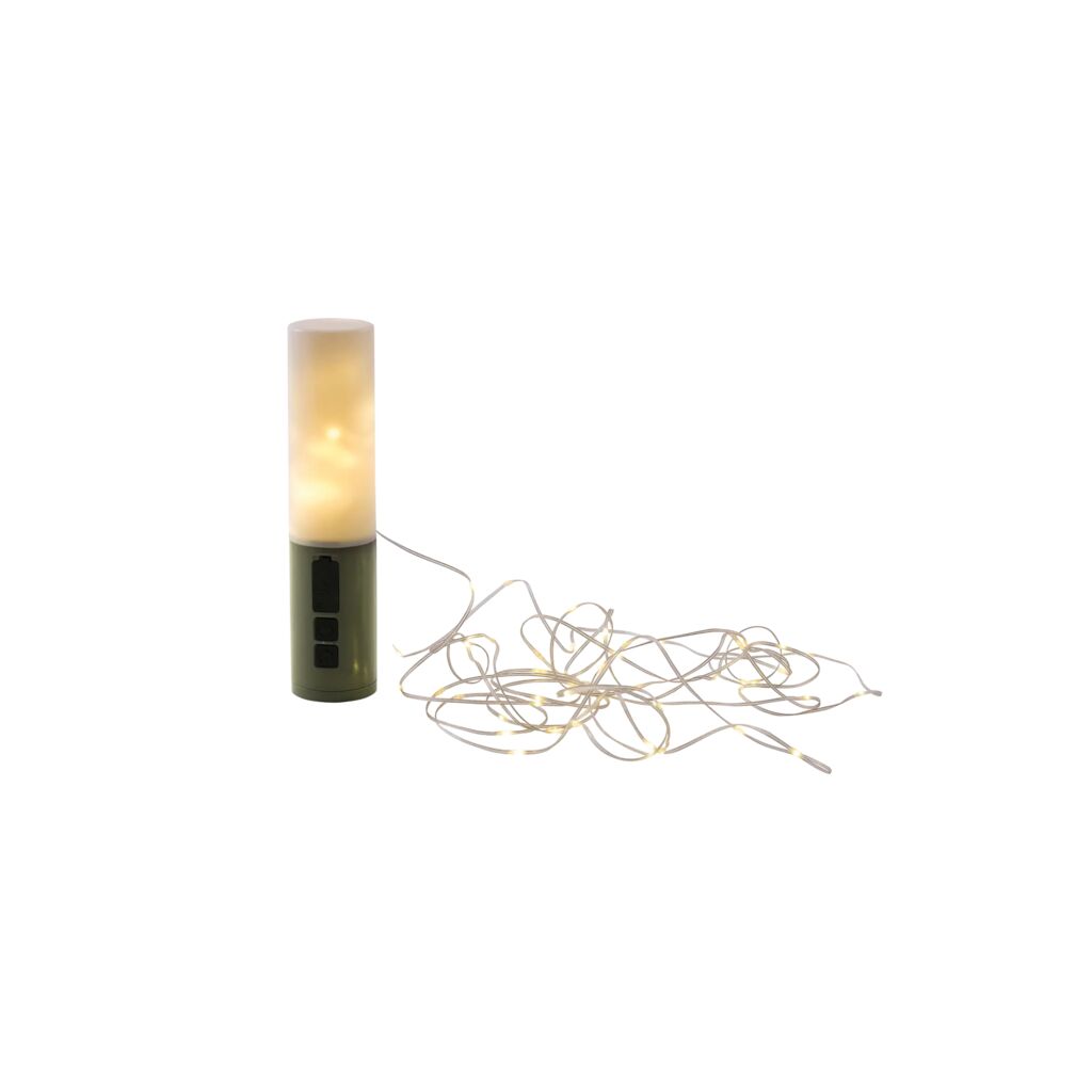 3-in-1-Lampe mit Taschenlampe, Laterne und 9 m Lichterkette in kompaktem Design.