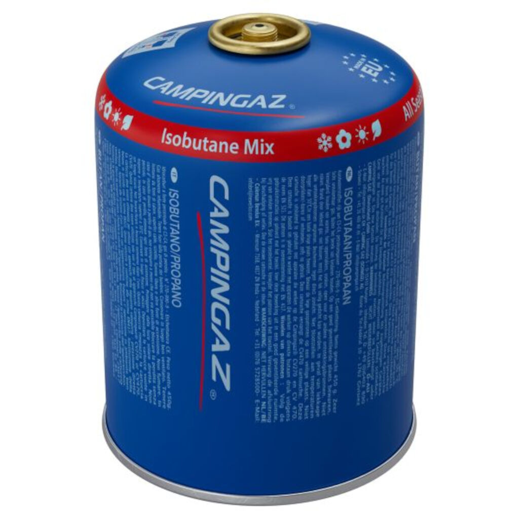 Größere Gasflasche mit selbstabdichtendem Ventil, das sicher ist und wieder verschlossen werden kann – sie kann an das Gerät angeschlossen und davon getrennt werden, auch wenn sie nicht leer sind. Die spezielle Gasgemisch funktioniert bis zu -10°C, was sie für das ganze Jahr Camping und Ausflüge in kältere Klimazonen geeignet macht.