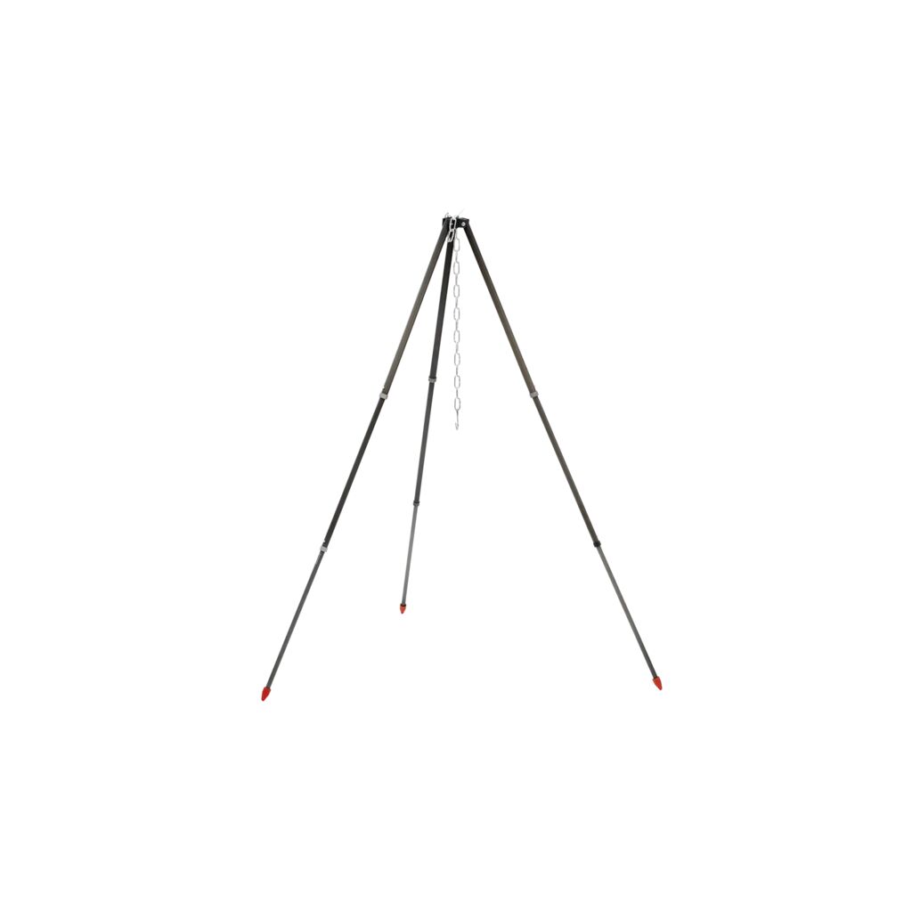 Leichtes teleskopisches Stativ aus Aluminium, das sich gut für die Wanderung mitnehmen lässt. Perfekt für diejenigen, die es bevorzugen, über offenem Feuer zu kochen.