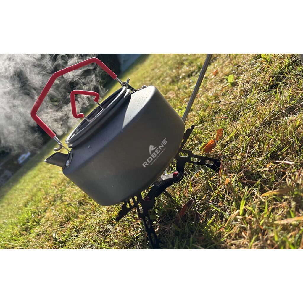 Leichter Gaskocher mit freistehendem Brenner, der eine gute Stabilität beim Kochen bietet.