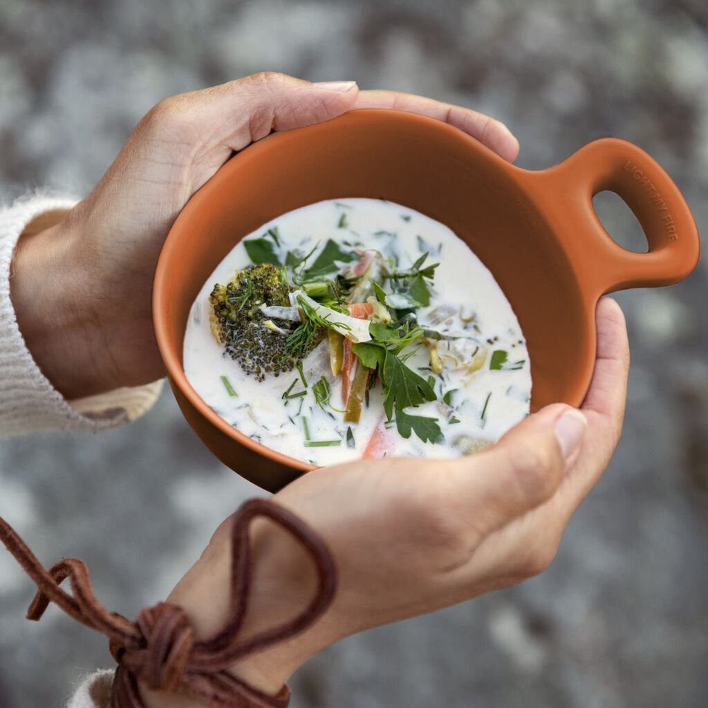 In Schweden hergestellte Kåsa von Light My Fire im klassischen skandinavischen Design mit mehreren Verwendungsmöglichkeiten dank ihrer großzügigen Größe und der gestreiften Milliliterskala auf der Innenseite.
