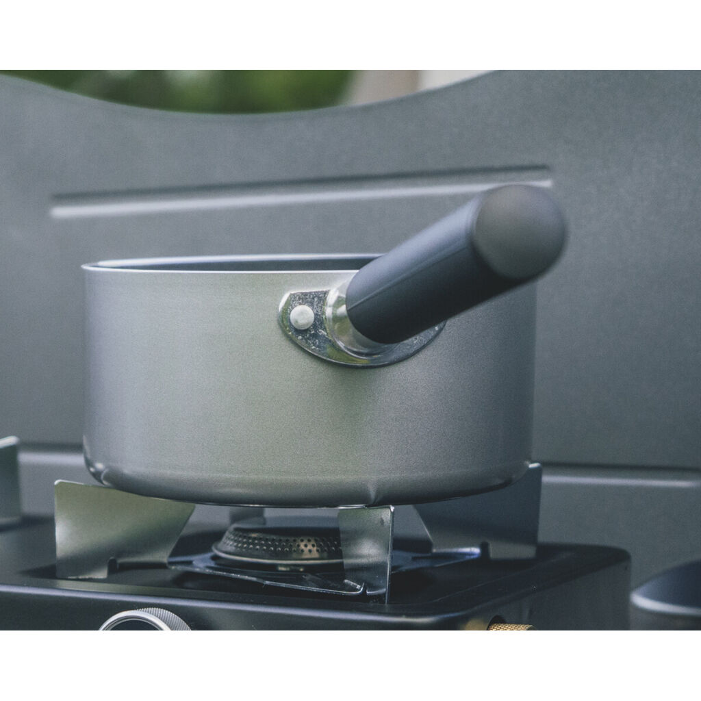 Kompakter Kochtopf von Outwell aus Aluminium mit keramischer Antihaftbeschichtung, auch geeignet für Induktionsherde. Der Griff ist abnehmbar und bietet einen guten Halt. Perfekt für alle, die einen hochwertigen, leichten und kompakten Kochtopf für den Campingurlaub suchen.