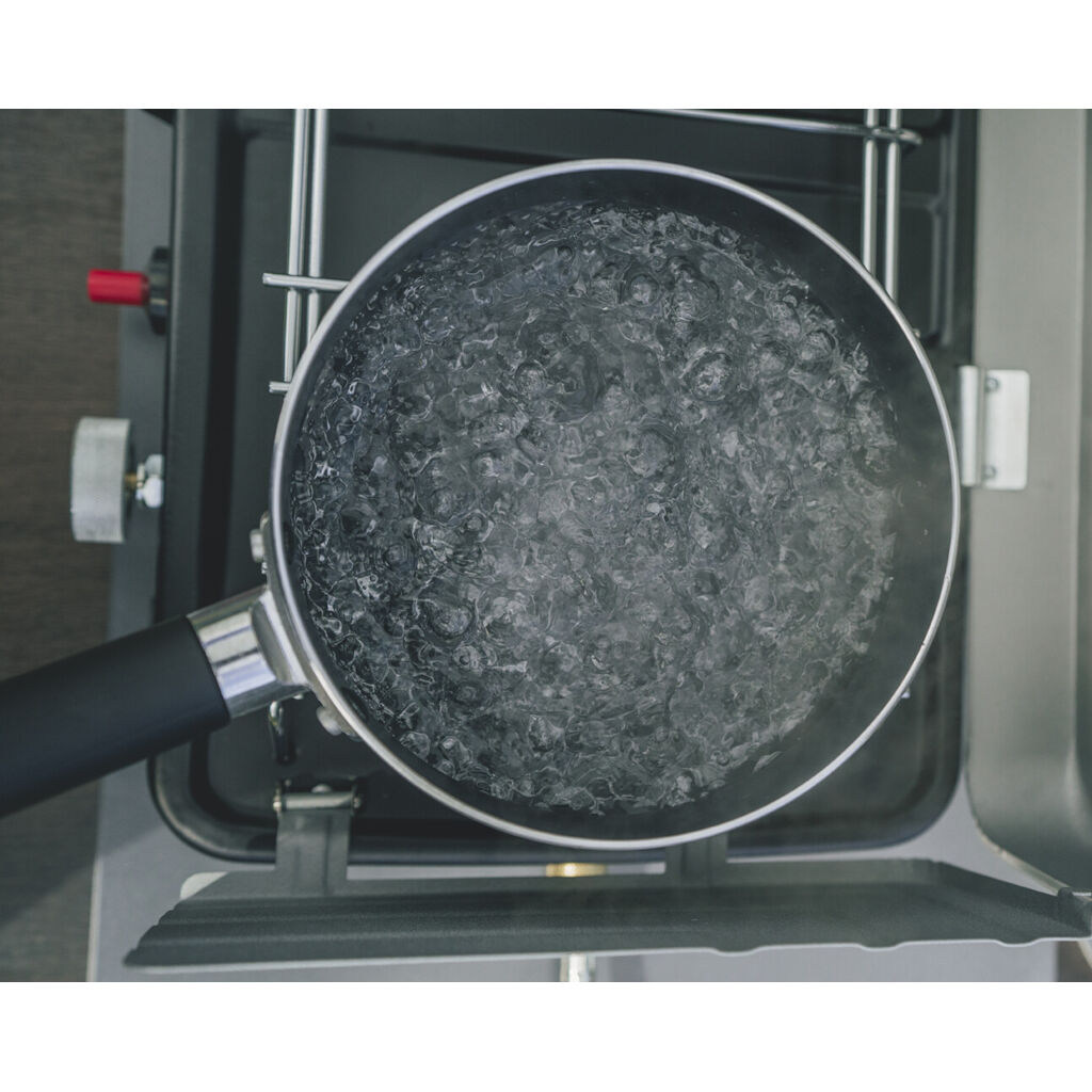 Kochtopf mit keramischer Antihaftbeschichtung für einfaches Kochen und Reinigen. Abnehmbarer Griff sorgt für eine kompakte Packgröße, ideal für den Campingurlaub.
