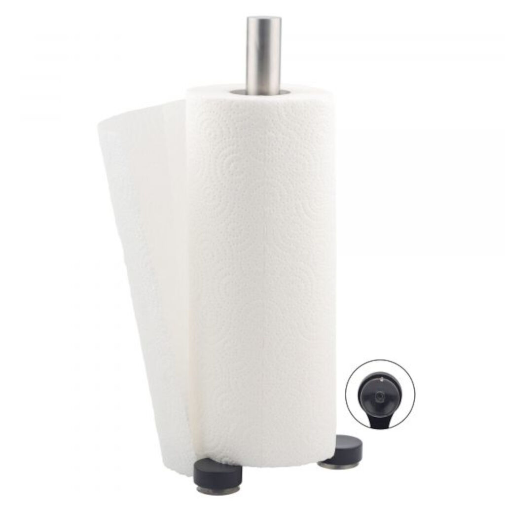 Halter für Küchenpapier, der nicht umkippt oder herumrutscht während der Fahrt oder wenn das Papier abgerollt wird. Hergestellt aus rostfreiem Stahl und Kunststoff.