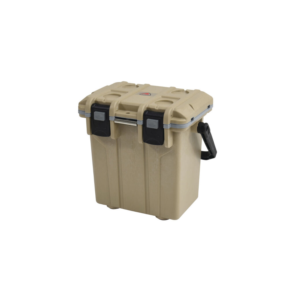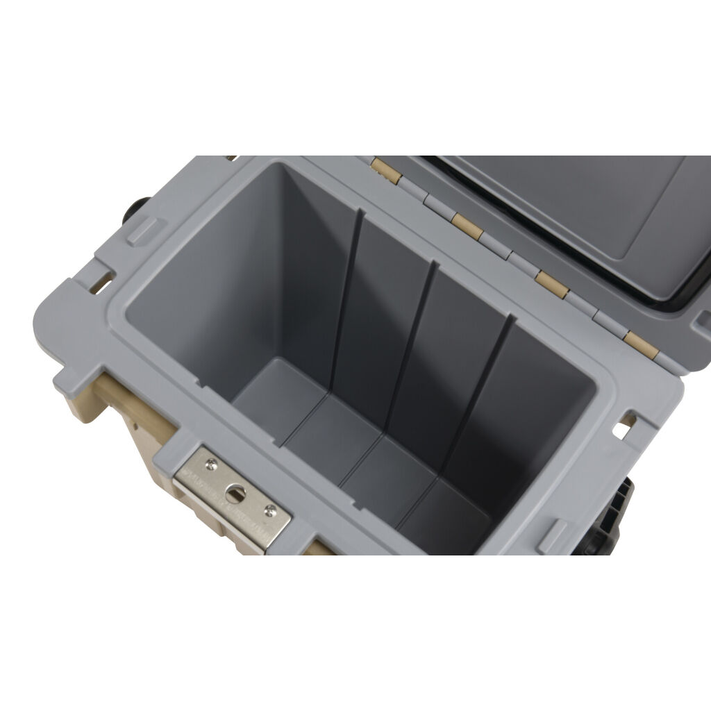 Passive Kühlbox, die dank eines sehr effektiven Spritzgussdesigns mit 5 cm dicker Isolierung die Waren bis zu fünf Tage gekühlt oder sogar gefroren hält. Einfach mit Kühlakkus oder Eis beladen, um die Waren kühl zu halten. Perfekt für kürzere Ausflüge. Ablassventil am Boden erleichtert das Entleeren und Reinigen.