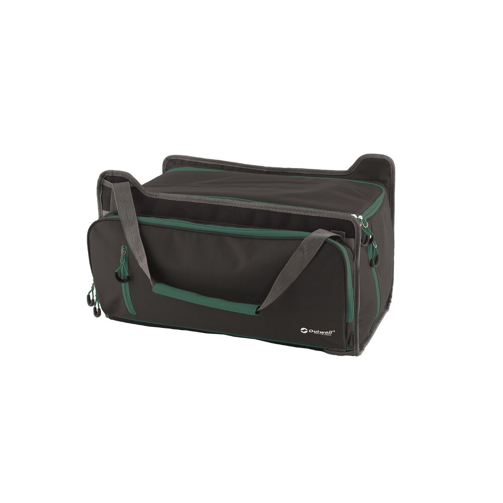 Hochwertige Kühlbox mit 34 Litern, ideal für Tagesausflüge oder das Picknick. Sie ist dank des Schulterriemens, der auch straff gezogen und als Tragegriff verwendet werden kann, leicht zu tragen. Die Kühlbox verfügt über isolierende Wände mit 8 mm Dicke und eine reflektierende Aluminiumfolie auf der Innenseite. Zwei Fächer an der Vorderseite bieten Platz für Teller, Besteck, Gläser und weiteres Zubehör.