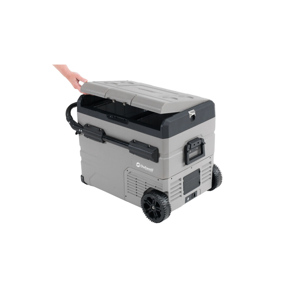 Robuste kompressorbetriebene Kühlbox mit zwei Fächern, in denen die Temperatur individuell gesteuert wird, sodass ein Fach als Gefrierfach und das andere als Kühlschrank verwendet werden kann, wenn man es möchte. Die Kühlbox kann sowohl über 12V (Auto) als auch 230V betrieben werden und bei fehlendem Strom über eine zusätzliche Batterie (Zubehör). Die Batterie hält eine Temperatur von +5°C bis zu 20 Stunden. Die Temperatur in den jeweiligen Fächern lässt sich einfach zwischen +20°C und -20°C über das Bedienfeld oder die Outwell-App einstellen.