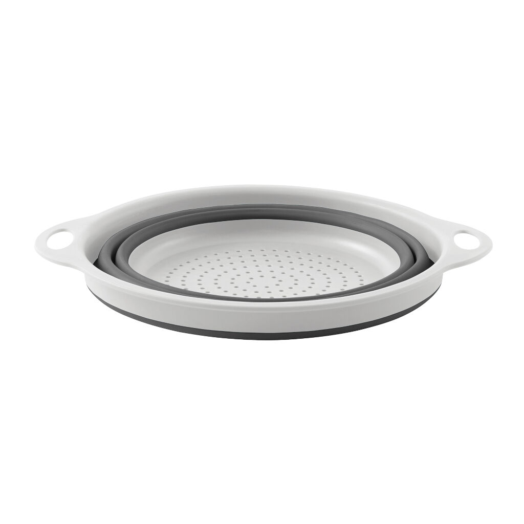 Zusammenklappbares Sieb für Camping, Outdoor-Aktivitäten oder den Tagesausflug. Konstruktion aus TPE und Kunststoff, die hitzebeständig ist, leicht zu reinigen und auch sicherstellt, dass das Sieb sich nicht ungewollt zusammenfaltet. Die Tatsache, dass es zusammenklappbar ist, sorgt für ein sehr kleines Packmaß.