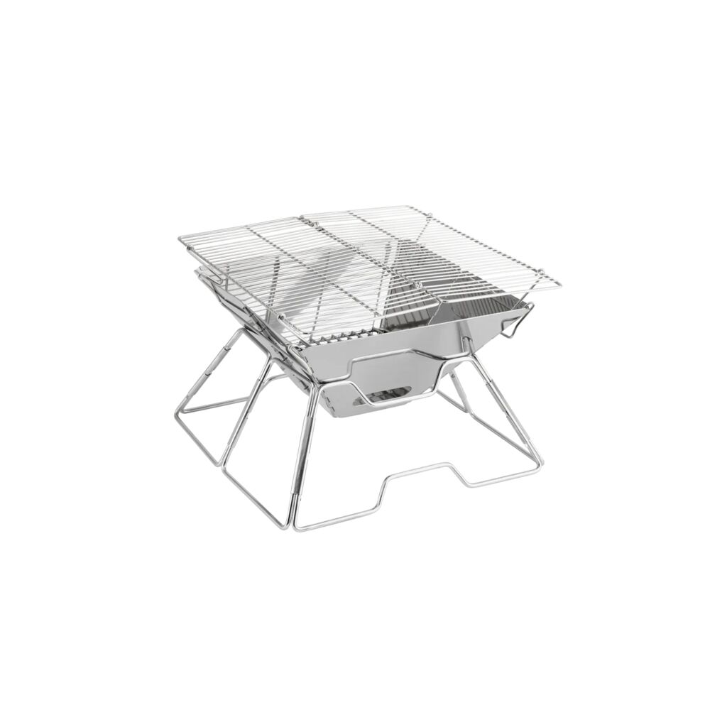 Klappbarer Mini-Grill mit kleinem Packmaß und guter Tiefe, die reichlich Platz für Holzkohle oder Holz bietet. Der Grill lässt sich einfach auf- und zuklappen und dank des integrierten Griffs leicht transportieren.