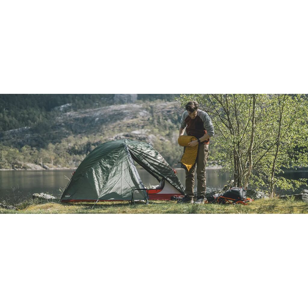 Die Form des Robens Air Impact bietet Platz, wo der Körper ihn benötigt, d.h. das Isomatte ist breiter über der Brust und schmaler zu den Beinen hin. Eine Oberfläche aus leichtem Ripstop-Polyester hält das Gewicht niedrig, während sie eine gute Abriebfestigkeit bietet. Die Oberseite hat auch eine Anti-Rutsch-Oberfläche, die den Schlafsack während der Nacht an Ort und Stelle hält. Das Robens Peak Valve Ventil hat einen guten Luftstrom und ein Rückschlagventil, das das Aufpumpen oder zusätzliches Einblasen von Luft erleichtert, um es fester zu machen.