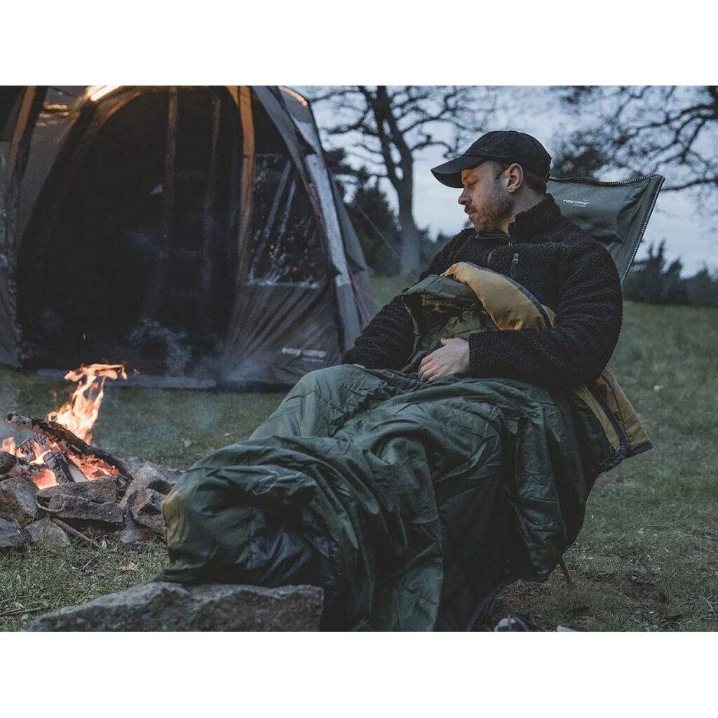 Die Decke besteht aus strapazierfähigem 210T Polyester-Ripstop und verfügt über ein weiches, gebürstetes Mikrofaserfutter für ein angenehmes Hautgefühl. Die Isolierung besteht aus 100 g/m² gebundener Hohlfaser-Polyester, wodurch sie für den Einsatz in 1-2 Jahreszeiten geeignet ist. Die Unterseite kann für zusätzliche Wärme an kalten Nächten um die Füße geknöpft werden.