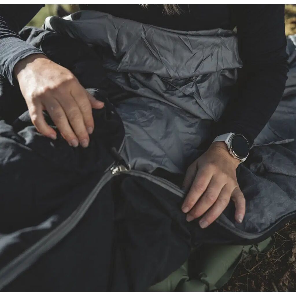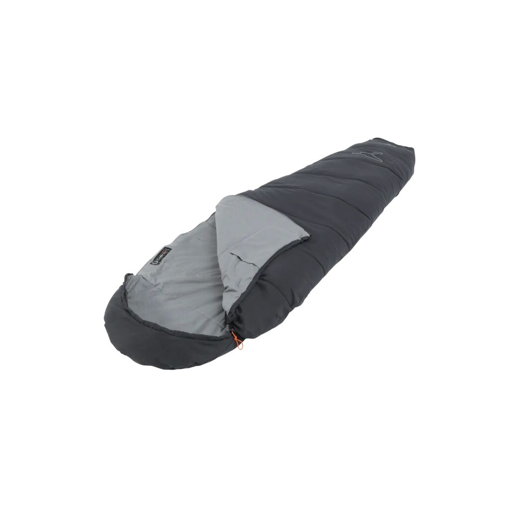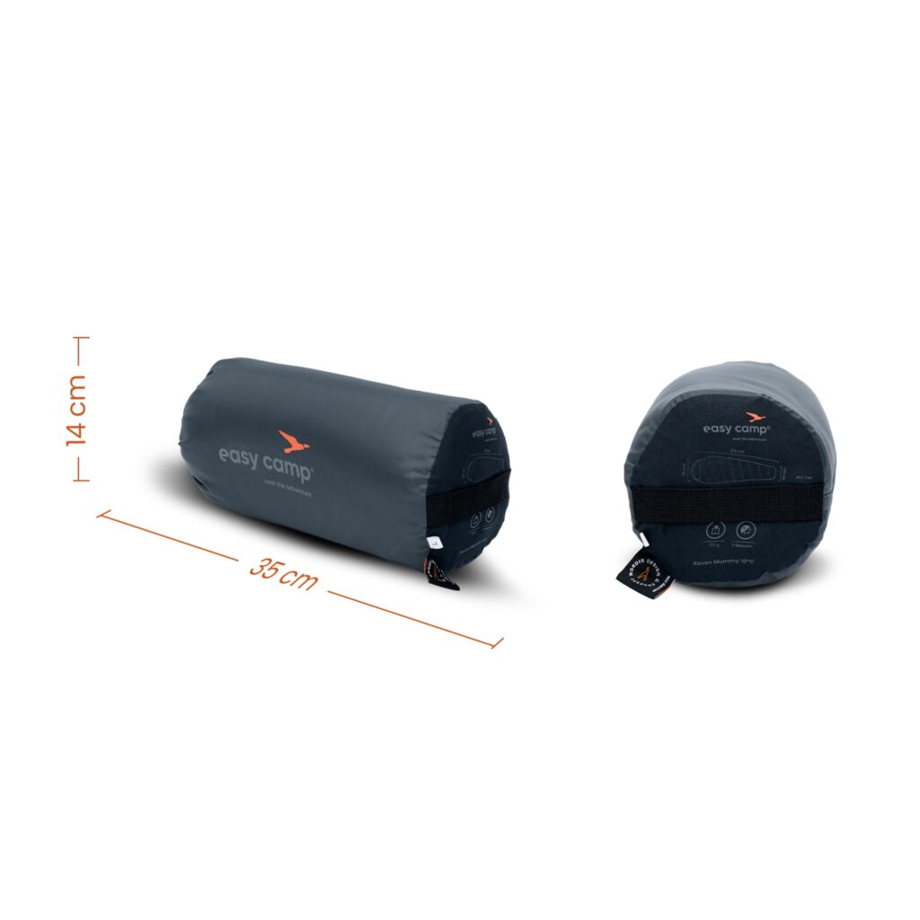 Easy Camp Raven Mummy ist ein leichter und weicher 1–2-Jahreszeiten-Schlafsack, der vollständig geöffnet und als Decke verwendet werden kann.