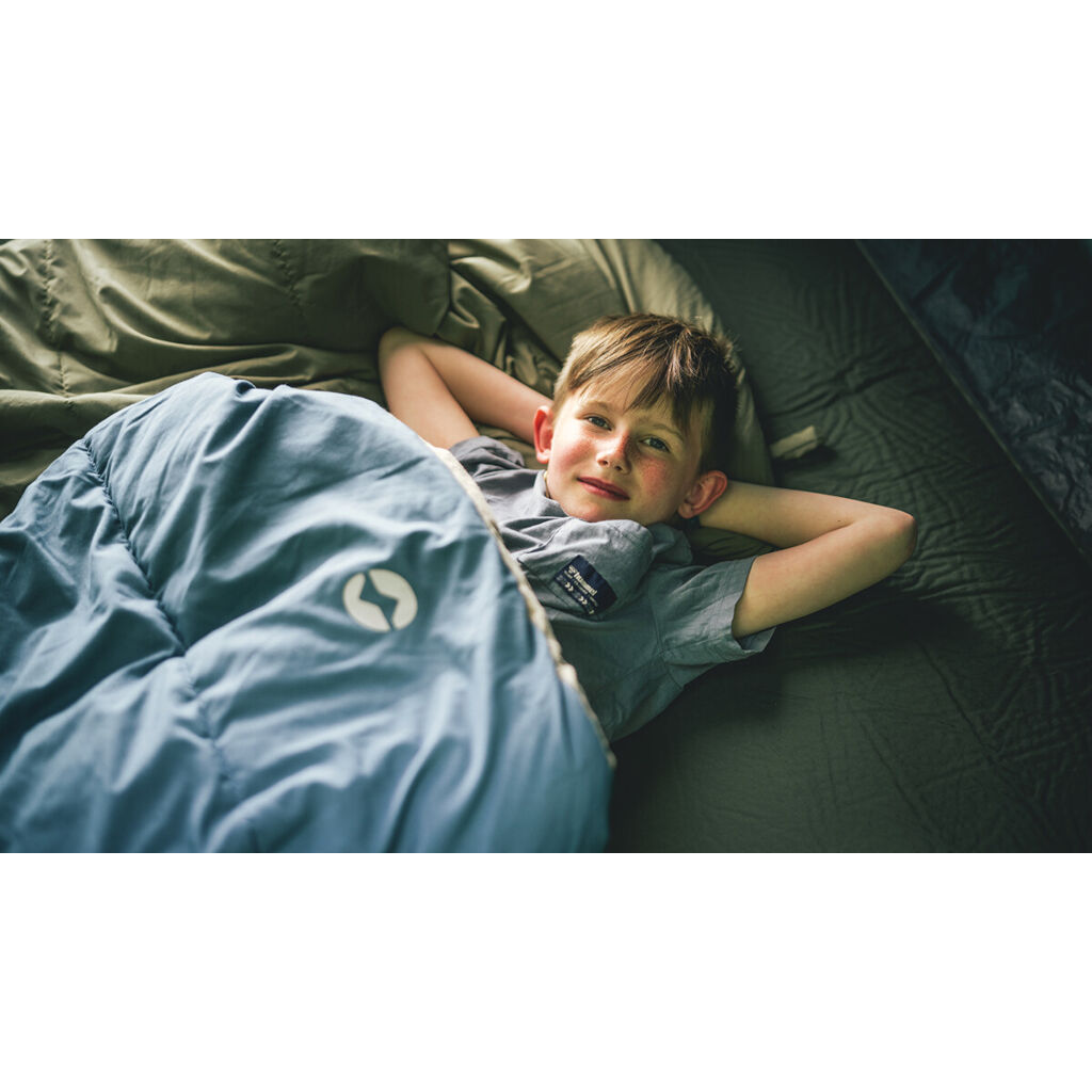 Ein warmer und sehr bequemer Schlafsack, der während der gesamten Campingsaison von Frühling bis weit in den Herbst hinein geeignet ist. Dank eines Innenfutters aus 100% weicher Baumwolle bietet er ein deutlich besseres Gefühl als herkömmliche Schlafsäcke. Die Zweischichtfüllung minimiert das Risiko von Kältebrücken, und wenn es zu warm wird, kann man ihn am Fußende öffnen oder komplett als normale Decke verwenden. Der Reißverschluss ist mit einer überlappenden Kante mit Füllung geschützt, die Wärmeverlust verhindert. Der Schlafsack kann auch auseinander genommen und als zwei Einzelschlafsäcke verwendet werden.