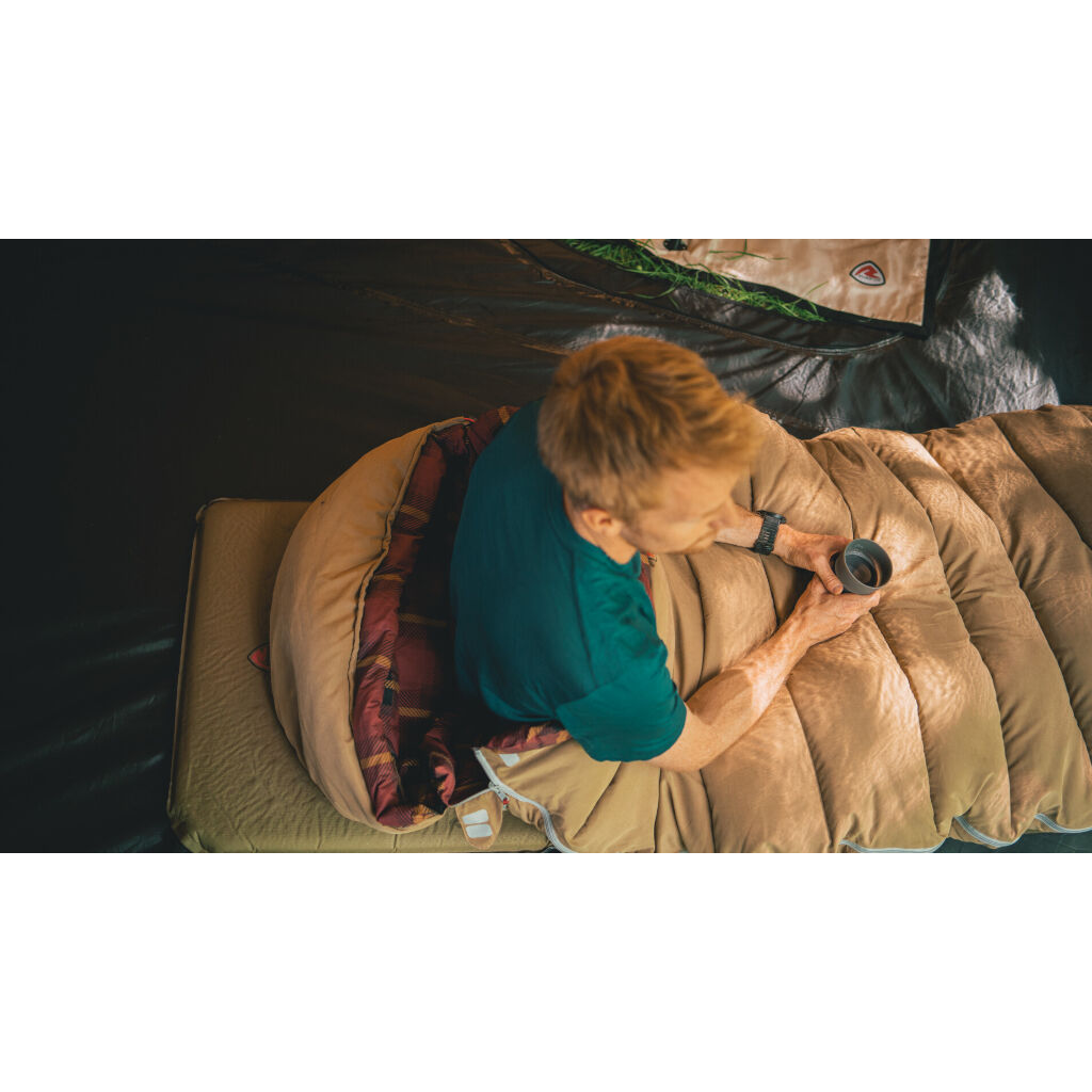 Ein warmer und bequemer Schlafsack von Robens mit einem Futter aus 100 % Baumwolle und einer Außenschicht aus einer Mischung aus Polyester und Nylon. Mit diesem robusten Schlafsack schlafen Sie komfortabel im Lager, auf dem Campingplatz oder in der Wildnis.