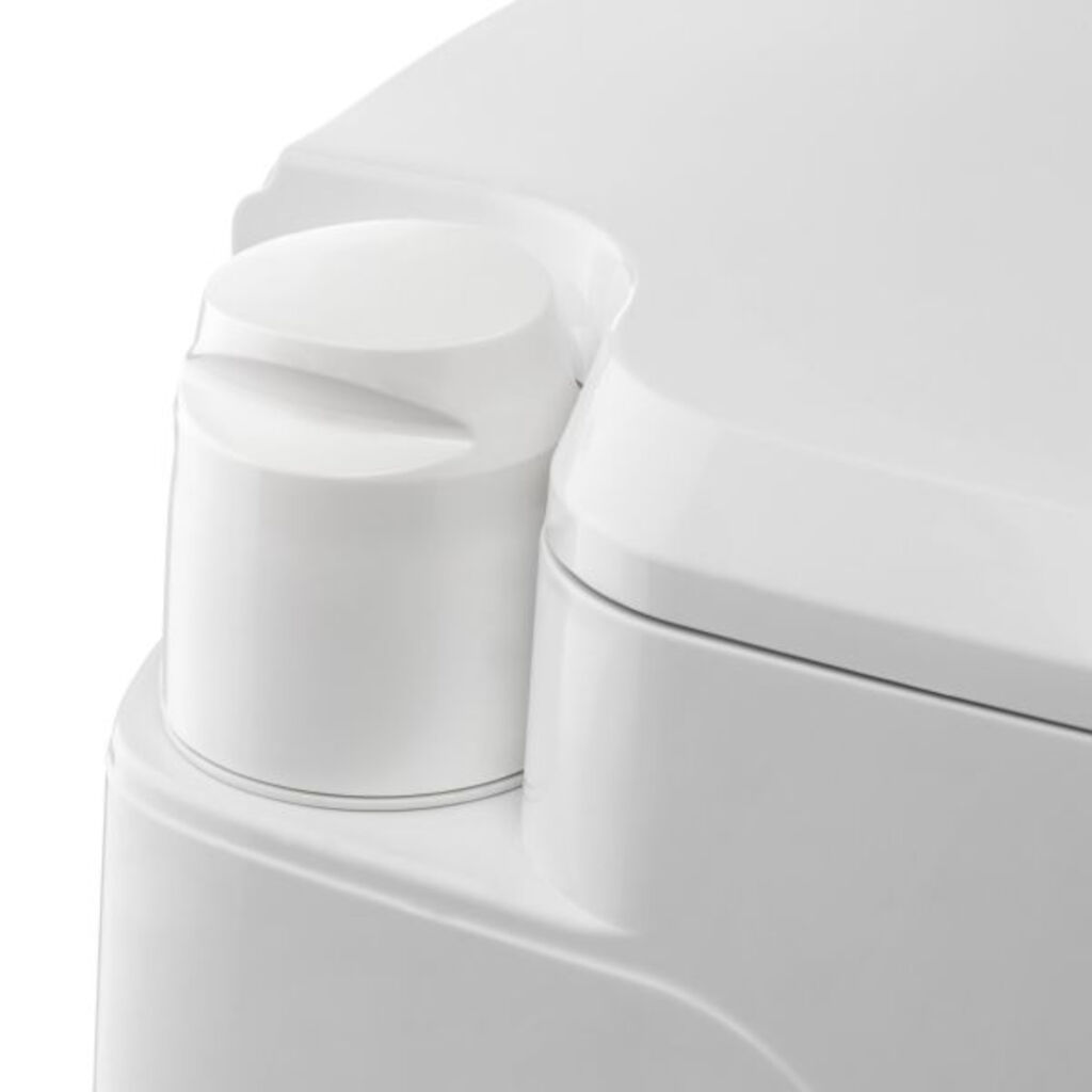 Thetford Porta Potti Qube 365 ist eine stabile und benutzerfreundliche tragbare Toilette mit einer Sitzhöhe von 40,8 cm. Der Abwassertank lässt sich einfach durch Öffnen des Verschlusses auf der Rückseite lösen und trennen. Mit einer Kapazität von 21 Litern bietet sie Platz für viele Besuche. Die Kolbenpumpe ist sowohl leise als auch effizienter als die einfacheren Blasebalgpumpen. Zusammenfassend ist die Thetford Porta Potti Qube 365 eine ausgezeichnete Lösung für diejenigen, die eine zuverlässige und komfortable tragbare Toilette mit etwas höherer Kapazität und besserer Sitzhöhe suchen. Ihre Haltbarkeit und einfache Handhabung machen sie zu einer sicheren Wahl für alle Camper.
