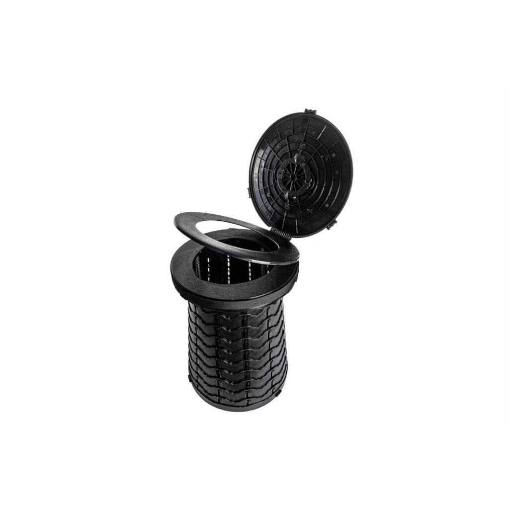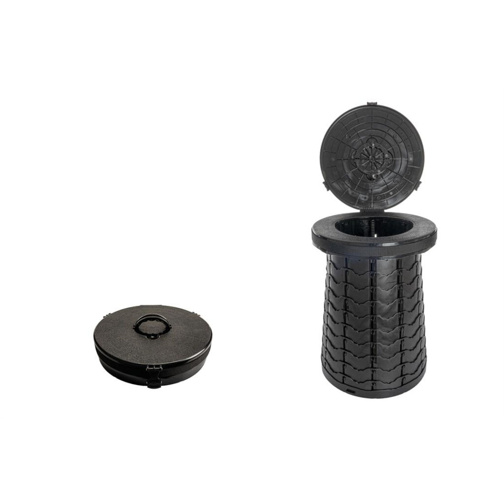 Eine sehr platzsparende tragbare Toilette mit angenehmer Sitzhöhe – ideal fürs Camping, fürs Auto oder für Ausflüge. Sie ist leicht, einfach zu benutzen und hat einen Sitz und Deckel.