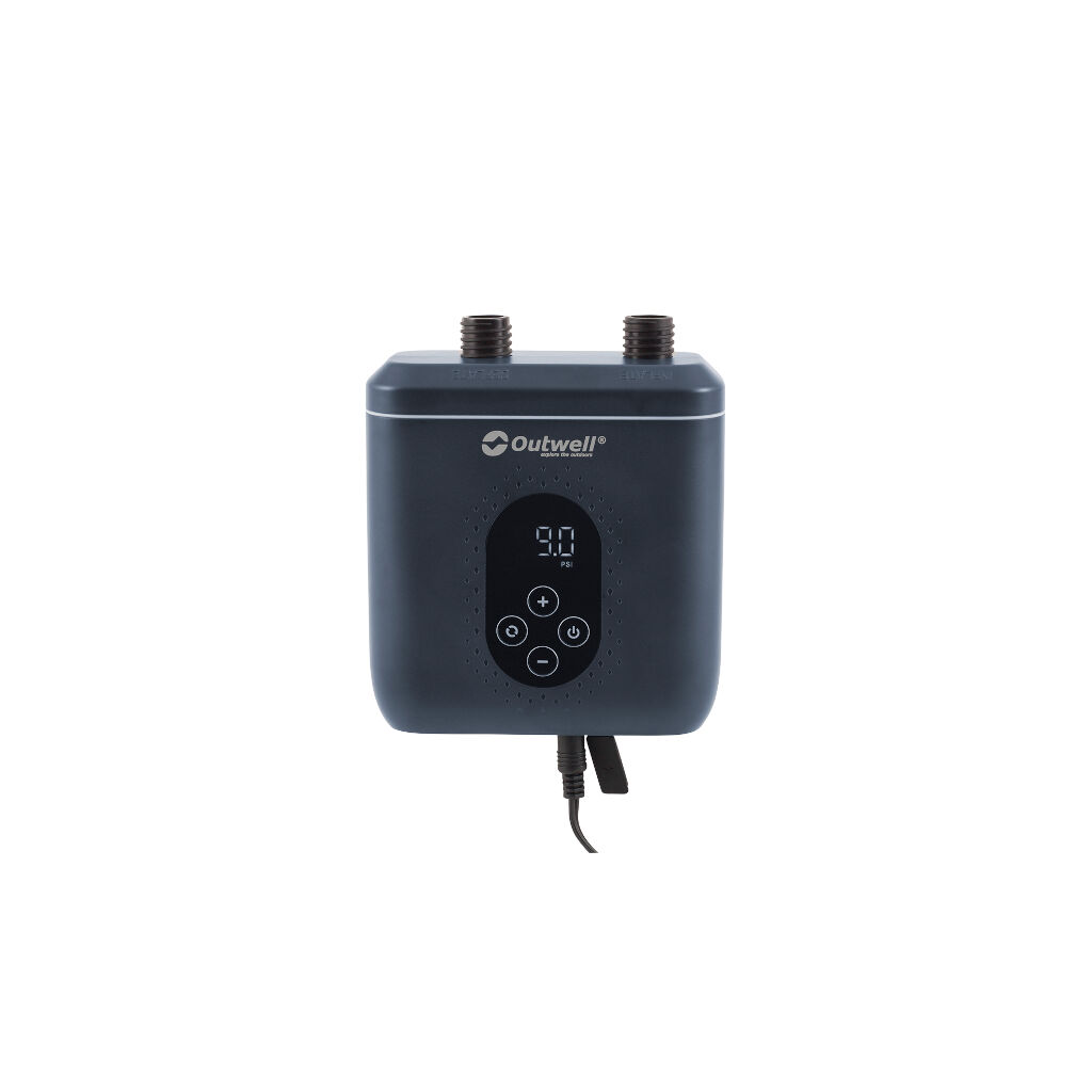 Pumpe zum Aufpumpen von Zelten mit Luftkanälen. Stellen Sie den Druck über das LCD-Display ein und starten Sie die Pumpe, die bis zum Erreichen des richtigen Drucks pumpt.