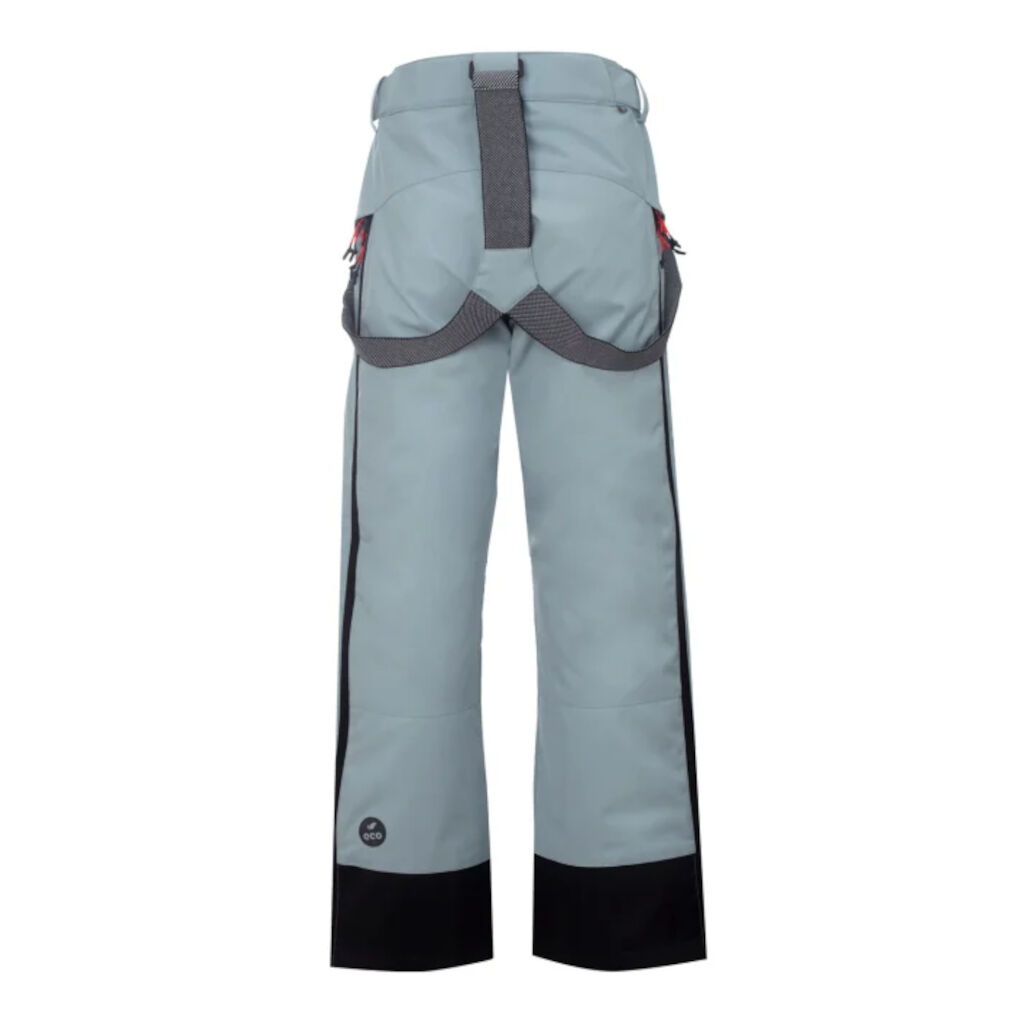 Wind- und wasserdichte Skihose aus recyceltem Stretchmaterial. Verstellbare Taille, abnehmbare Hosenträger, Schneefang und Reißverschluss entlang der gesamten Seiten für optimale Passform, geeignet für Schneespiele und Skifahren.