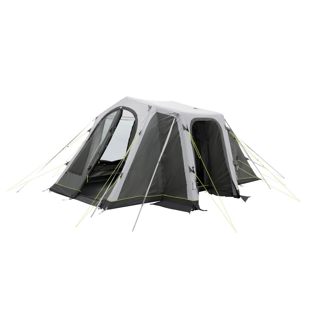 Das Montana 4 Air verfügt über einen Seiteneingang und einen Fronteingang. Der regenfeste Seiteneingang ermöglicht einen einfachen Zugang zum Schlafbereich und Wohnraum, während die große Frontöffnung an warmen Tagen die Belüftung des Zeltes verbessert. Der Seiteneingang hat Doppeltüren und einen abnehmbaren Boden zwischen den Türen, was ihn ideal für die Aufbewahrung von Schuhen und Ausrüstung macht, die nicht ins Zelt gebracht werden sollen.