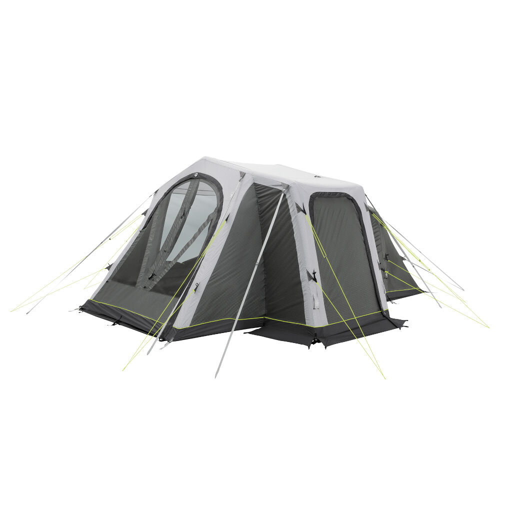Die Kombination aus Luftkanälen, robustem Gewebe und einer einzigartigen Abspannkonstruktion ermöglicht es dem Zelt, extremen Windbedingungen standzuhalten (getestet bis 88 km/h). Die Luftkanäle sind an der Oberseite gebogen, um eine größere Stehhöhe im Zelt zu schaffen.