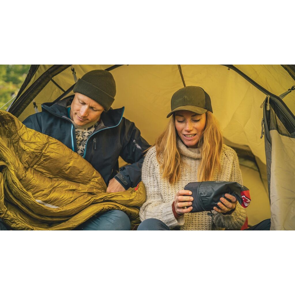 Reiselaken, das entweder als Schutz für den Schlafsack dient oder für die Verwendung auf Reisen, bei denen man sicher sein möchte, ein sauberes Laken zu bekommen. Das Laken kommt mit einer Kissentasche mit rutschfester Konstruktion, um sicherzustellen, dass das Kissen während der Nacht an Ort und Stelle bleibt. Einfach zu waschen.