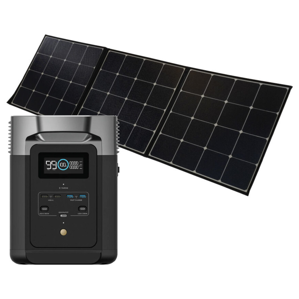 Werden Sie unabhängig vom Stromnetz auf dem Campingausflug, in der Hütte oder bei einem Stromausfall mit diesem Paket aus EcoFlow Delta 2 + Hyundai Solarmodul. Mit einer maximalen Kapazität von 1800W bewältigt es alle Einsatzbereiche, die bisher ein Stromaggregat erforderten, jedoch in einem deutlich handlicheren Format und vollkommen ohne Motorgeräusche und Abgase. 230V, 12V und USB-Anschlüsse machen es für alle Arten von Elektronik geeignet. Flexible Lademöglichkeiten ermöglichen das Aufladen über das Stromnetz, das Auto oder das Solarmodul.