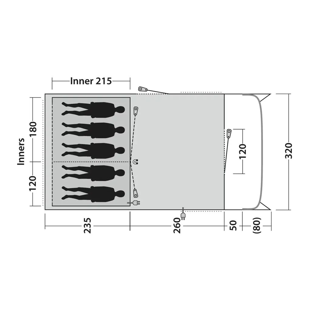 Outwell Ohio 5 TC ist ein exklusives Familienzelt für alle, die mit höchstem Komfort campen möchten. Der großzügige Wohnbereich mit großen Fenstern schafft eine helle und einladende Atmosphäre, in der die ganze Familie entspannt zusammenkommen kann. Die zwei abgedunkelten Schlafzimmer sorgen für optimale Bedingungen für einen erholsamen Schlaf und lassen sich bei Bedarf zu einer großzügigen, suiteähnlichen Schlaflösung öffnen. Der geschützte Frontbereich dient als praktische Erweiterung des Wohnraums – ideal zum Entspannen, Essen oder für zusätzlichen Stauraum bei jedem Wetter. Das integrierte und patentierte Outwell Light System sorgt für dimmbares, stimmungsvolles Licht und unterstreicht das hochwertige Gesamtgefühl. Zusammen mit dem Outwell Powertec Pole System und dem robusten, strapazierfähigen Material erhalten Sie ein stabiles und zuverlässiges Zelt für viele Jahre komfortabler Campingabenteuer. Die große Neuheit für 2026 ist das aktualisierte, integrierte und patentierte Outwell Light System mit funktionaler und dimmbarer Beleuchtung im Wohnbereich. Das Outwell Powertec Pole System besteht aus extra starken Glasfaserstangen, die im Vergleich zu herkömmlichen Lösungen mehr Stabilität bieten. In Kombination mit dem robusten Material entsteht ein Zelt für anspruchsvolle Vielcamper.