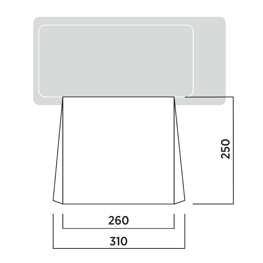 Markise für Vans, Wohnwagen und kleinere Wohnmobile mit den Maßen 2,5 x 2,6 Meter. Dank der kleinen Packmaße ist sie einfach mitzunehmen und leicht zu montieren, wenn man einen geschützten Außenbereich benötigt. Kann über eine Kederleiste (5+7 mm) oder mit Seilen über das Fahrzeug befestigt werden.