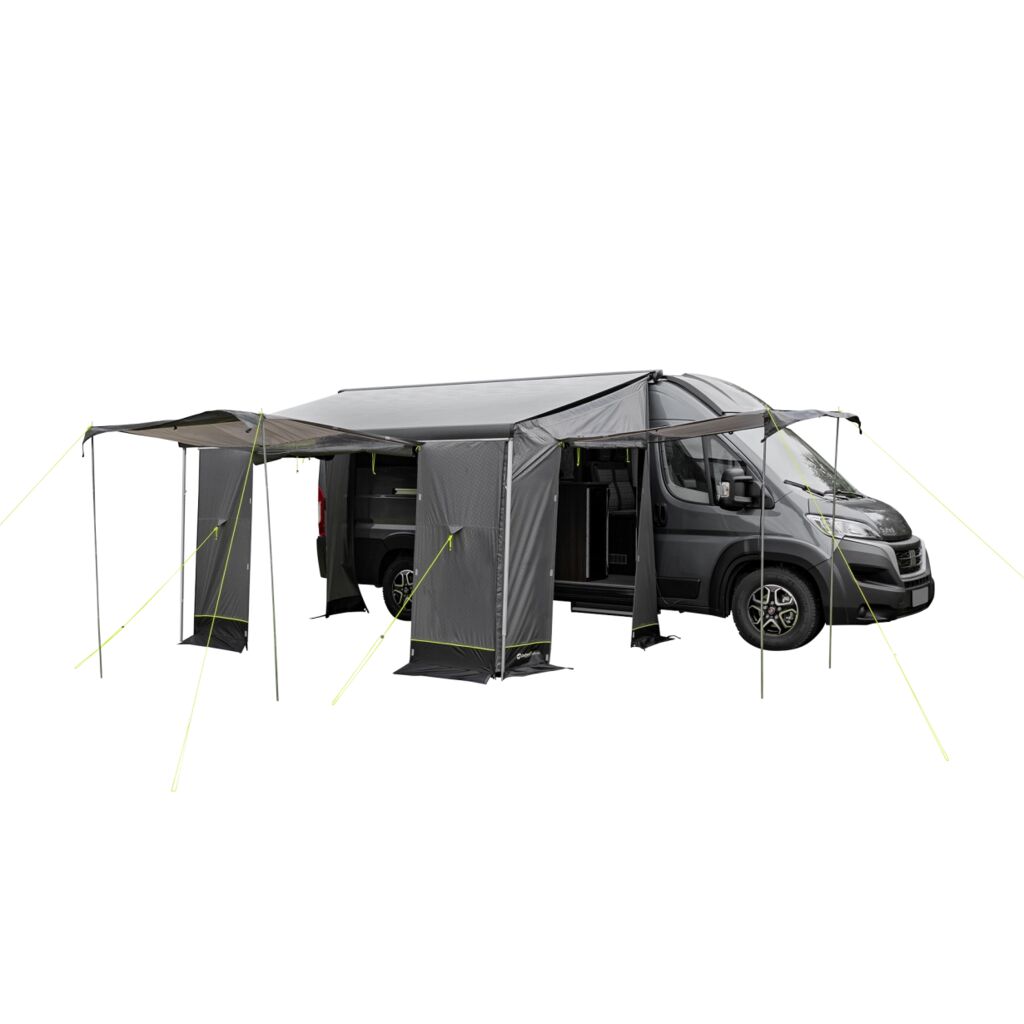 Das Outwell Sideroads Markisenvorzelt ist eine clevere und praktische Ergänzung zu Ihrer Markise und bietet zusätzlichen Platz und Schutz neben dem Fahrzeug. Es wird direkt an der Markise montiert und ist speziell für höhere Fahrzeuge wie Ducato, Sprinter, Crafter und ähnliche Modelle konzipiert, was es ideal für Vanlife und Campingreisen macht. Die großen getönten Fenster lassen angenehmes Licht herein und bieten gleichzeitig Schutz und Privatsphäre. Die vormontierten neonfarbenen Abspannleinen ermöglichen einen schnellen und einfachen Aufbau, selbst wenn es bereits dunkler wird. Dank des kompakten Packmaßes lässt sich das Markisenvorzelt leicht auf Reisen mitnehmen, und die mitgelieferten Dachstangen sorgen für eine stabile und geräumige Konstruktion.