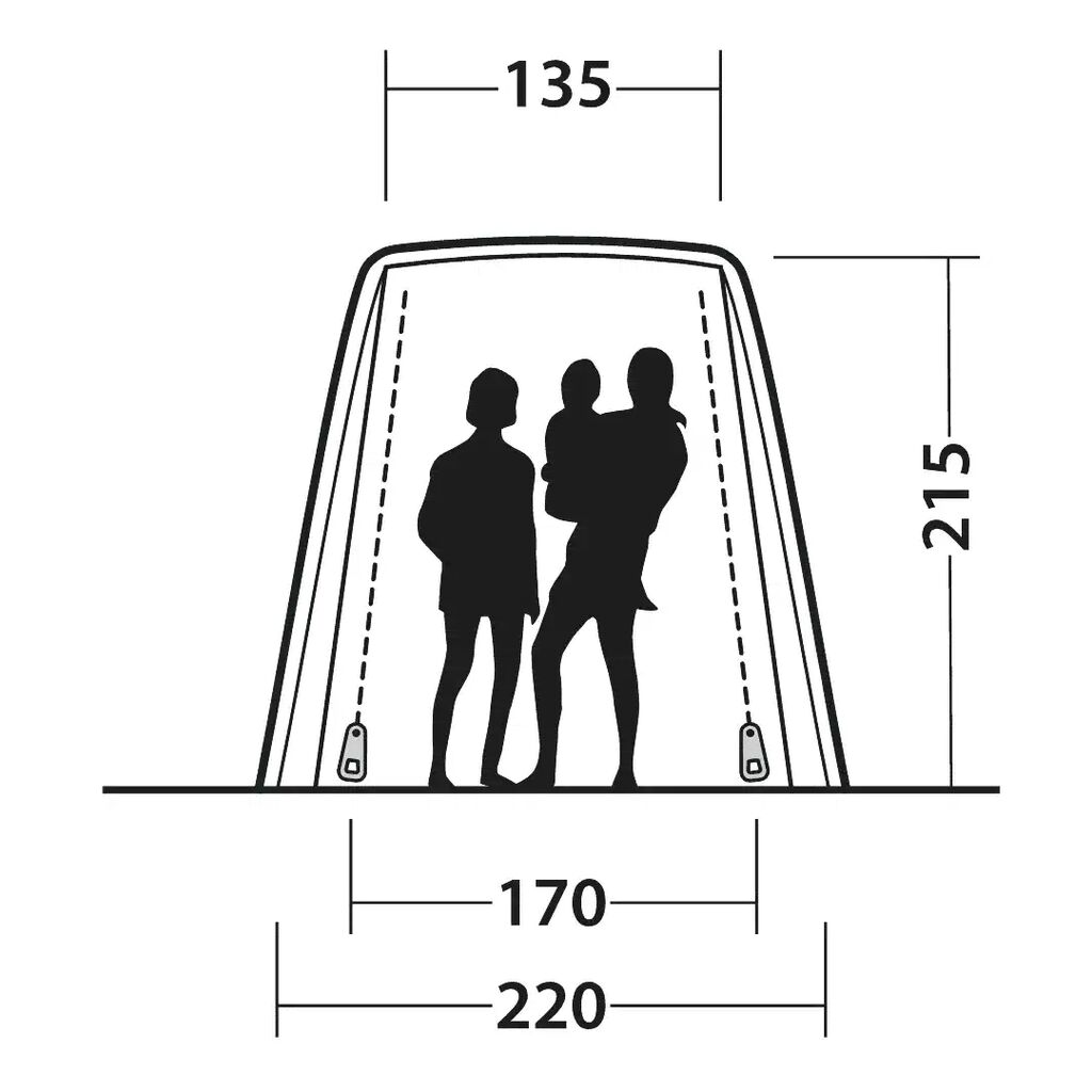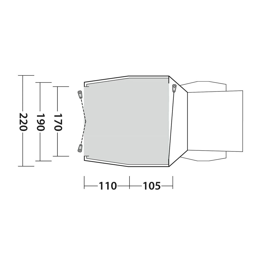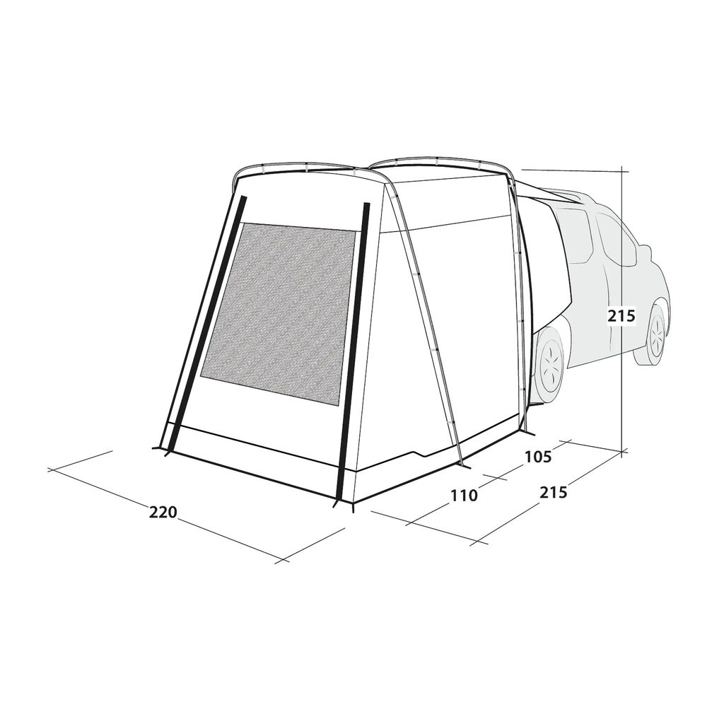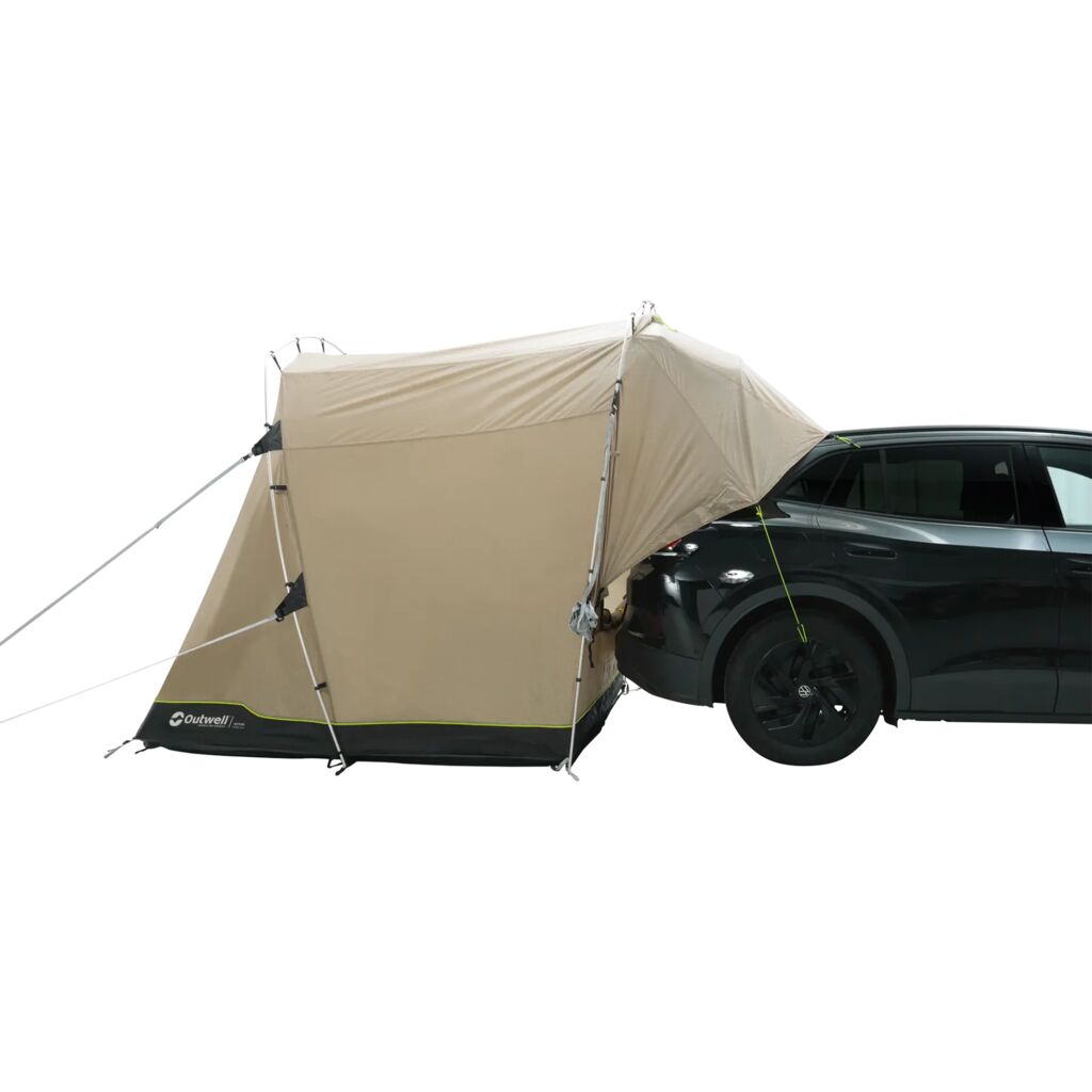 Outwell Dune SUV is a free-standing tent designed to be placed against the rear of your campervan or car. Perfect for creating extra space for cooking, storing equipment or relaxing in bad weather. The tent is pack-friendly and highly durable thanks to its robust fabric and aluminium poles. The attachment to the vehicle is secured to the rear doors, around the rear wheels and with adjustable ground anchor points. The tent is designed to fit mid-size SUVs such as Toyota RAV4, VW Tiguan, VW ID.4, BMW X3, Mercedes GLB/EQB, Škoda Enyaq, Tesla Model Y and similar vehicles with a height between 155 and 185 cm.