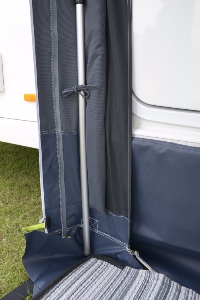 Beine zur Erleichterung der Abdichtung gegen die Wohnwagenwand. Passend für alle Dometic-Vorzelte mit einer Höhe bis zu 325 cm (Größen S, M und L). Einstellbare Länge von 110 bis 298 cm.