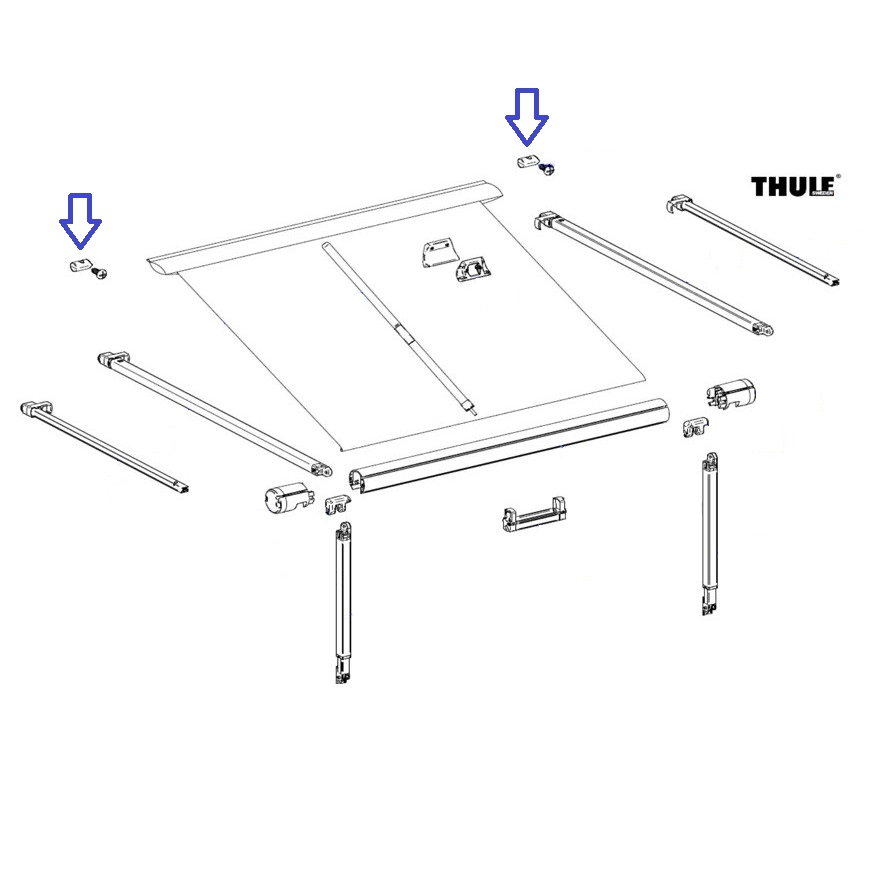 Set mit zwei Stoppschrauben, um Ihre Thule Omnistor Markise in der Schiene zu befestigen.