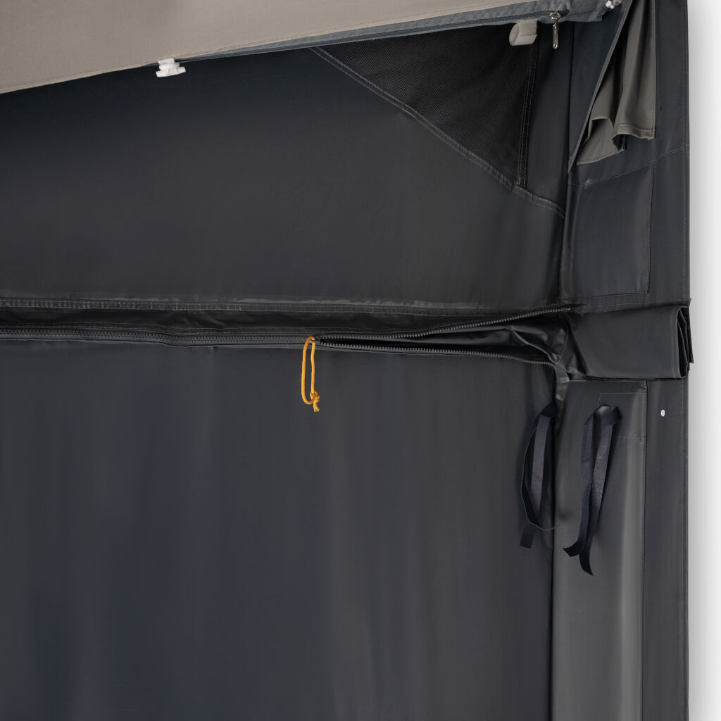 - Robuster Zeltstoff (400 g/m²) aus Weathershield PVC – wintertauglich, langlebig, wasserdicht und leicht zu reinigen