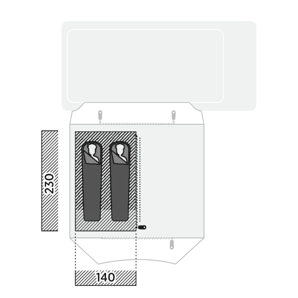 Geben Sie Ihrem Reine-Bustelt zusätzliche Flexibilität mit einem Innenzelt für zwei Personen. Es lässt sich einfach aufstellen und entfernen und kann sowohl als Schlafplatz als auch zur Aufbewahrung genutzt werden.