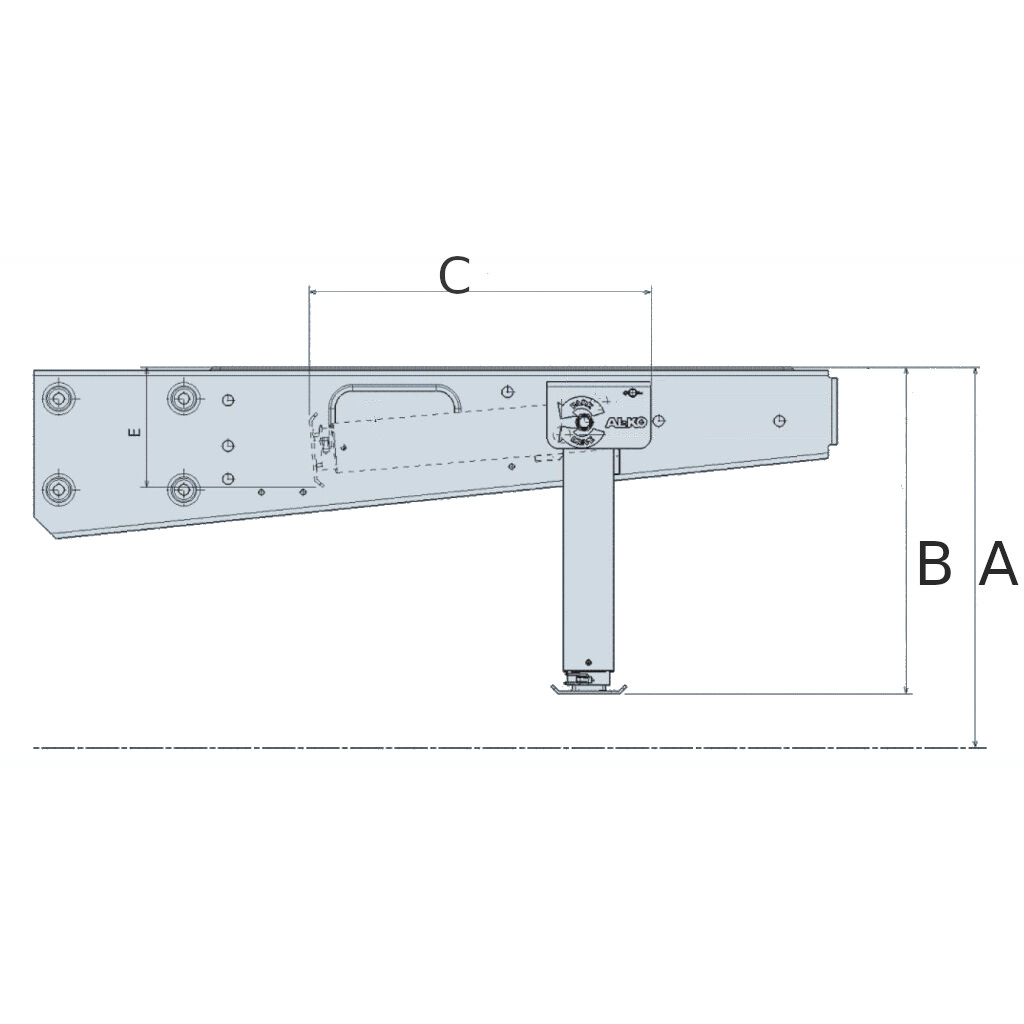 Die Stützbeine passen auf alle AL-KO/AMC-Chassis und Rahmenverlängerungen, die ab August 1995 hergestellt wurden und mit vorgebohrten Löchern ausgestattet sind. Dies macht die Montage besonders einfach. Zwei Schrauben pro Stützbein mit einem Lochbild von c/c 60 mm. Bei einigen Wohnmobilen kann es hilfreich sein, ein Loch in die Verkleidung zu bohren, um den Zugang zur Stützbeinkurbel zu erleichtern.