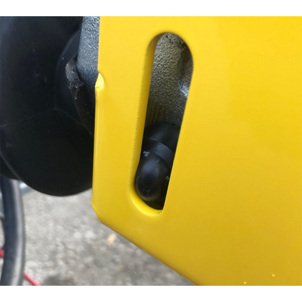 Kupplungsschloss für Winterhoff WS3000, das von der Schwedischen Brand- und Sicherheitszertifizierung AB zugelassen ist. Super Heavy Duty 4 mm Stahl kombiniert mit dem stärksten Schloss, das jemals in ähnlichen Produkten verwendet wurde. Bietet sowohl einen sehr guten Schutz als auch eine starke visuelle Diebstahlabschreckung.
