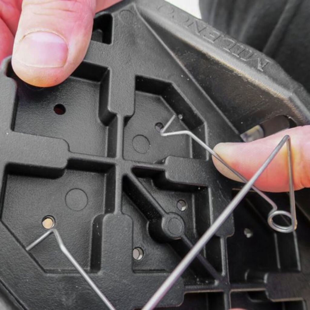 Stützplatten, die verhindern, dass das Bein auf weichem Untergrund einsinkt. Kann dauerhaft an den Stützbeinen verbleiben. Ein Klick-Verschluss-System sorgt dafür, dass sie beim Fahren mit dem Wohnwagen nicht klappern.