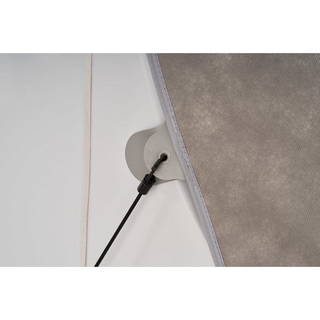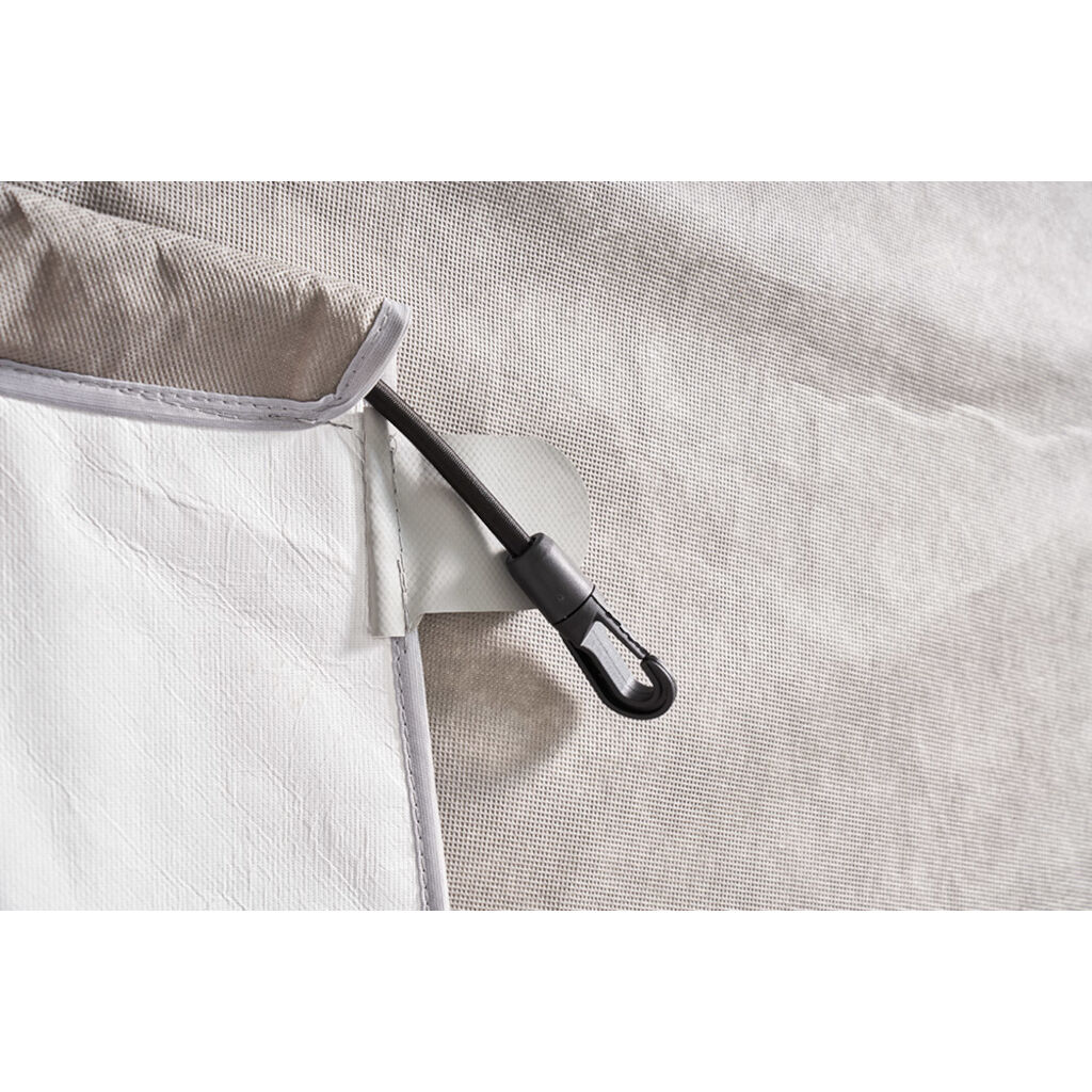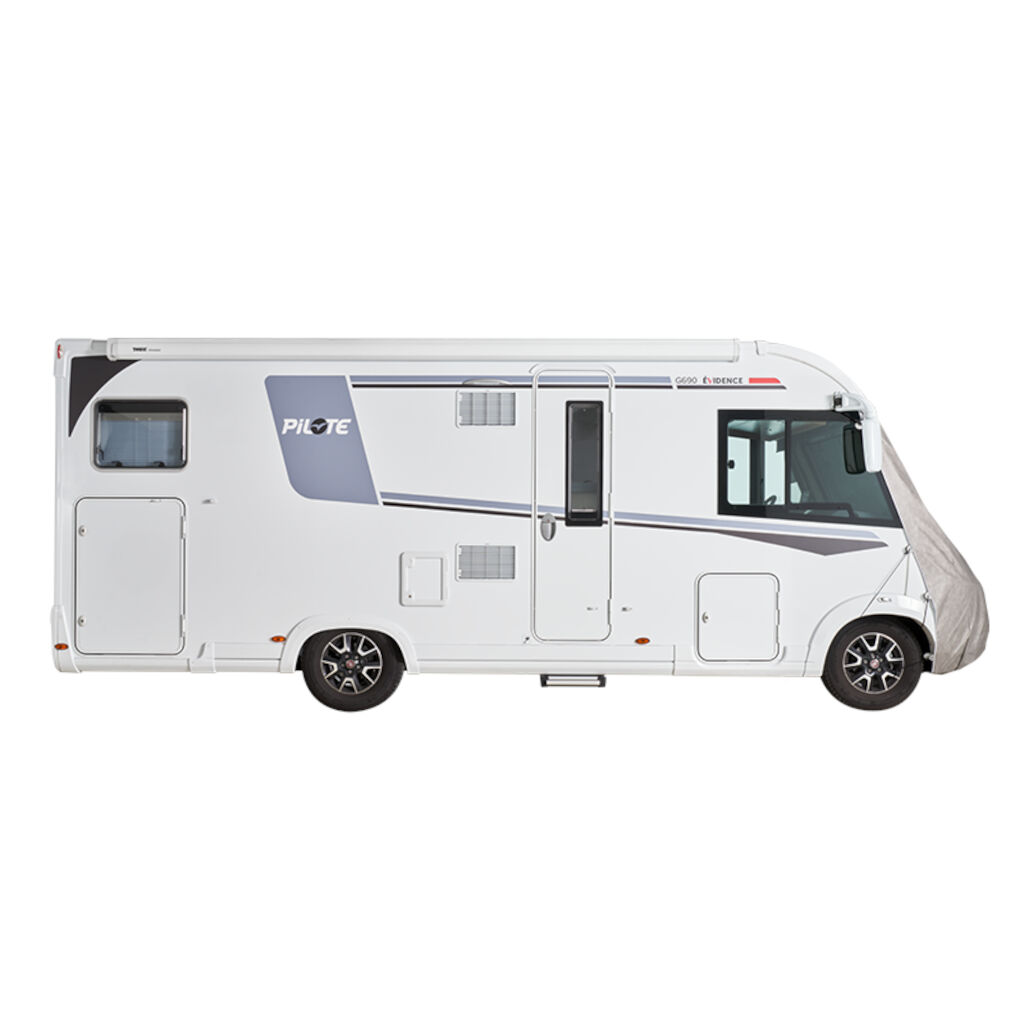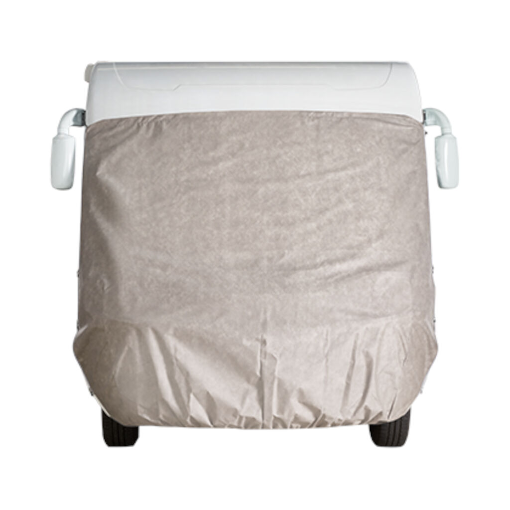 Universeller Frontschutz für integrierte Wohnmobile von Hindermann, erhältlich in 2 Größen. Schützt das Wohnmobil vor Schmutz, Schnee und Eisbildung und ist imprägniert, um Wasser und Schmutz abzuweisen, sodass Algen, Moos und Blütenpollen keinen Halt finden. Es wird an den Seiten mit Ösenbändern und Gummispannern befestigt. Ein integriertes elastisches Band sorgt für eine Abdichtung entlang der unteren Kante und elastische Schnallen dichten entlang der oberen Kante ab. Der Schutz wird an den Halterungen für die Außenspiegel befestigt, die oben angebracht sind. Perfekt für langanhaltenden Schutz, wenn das Wohnmobil nicht genutzt wird.