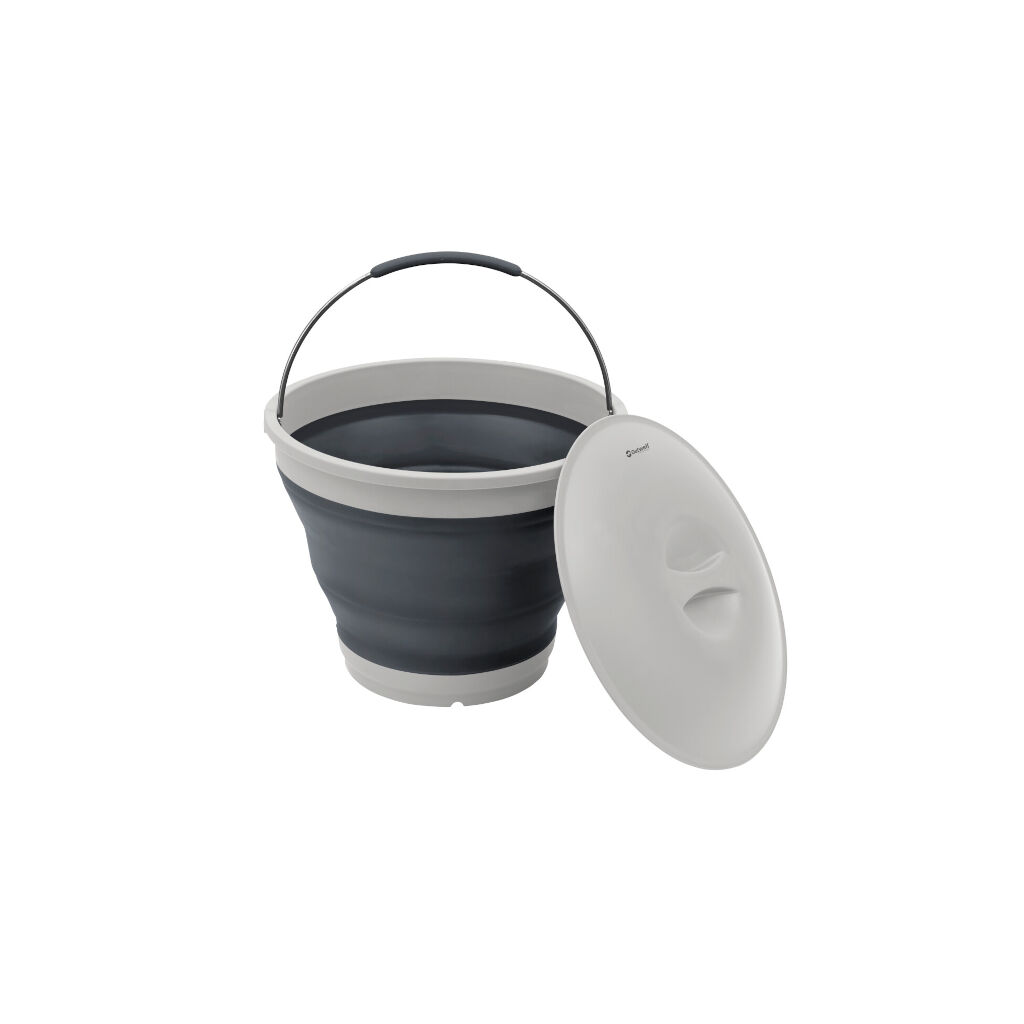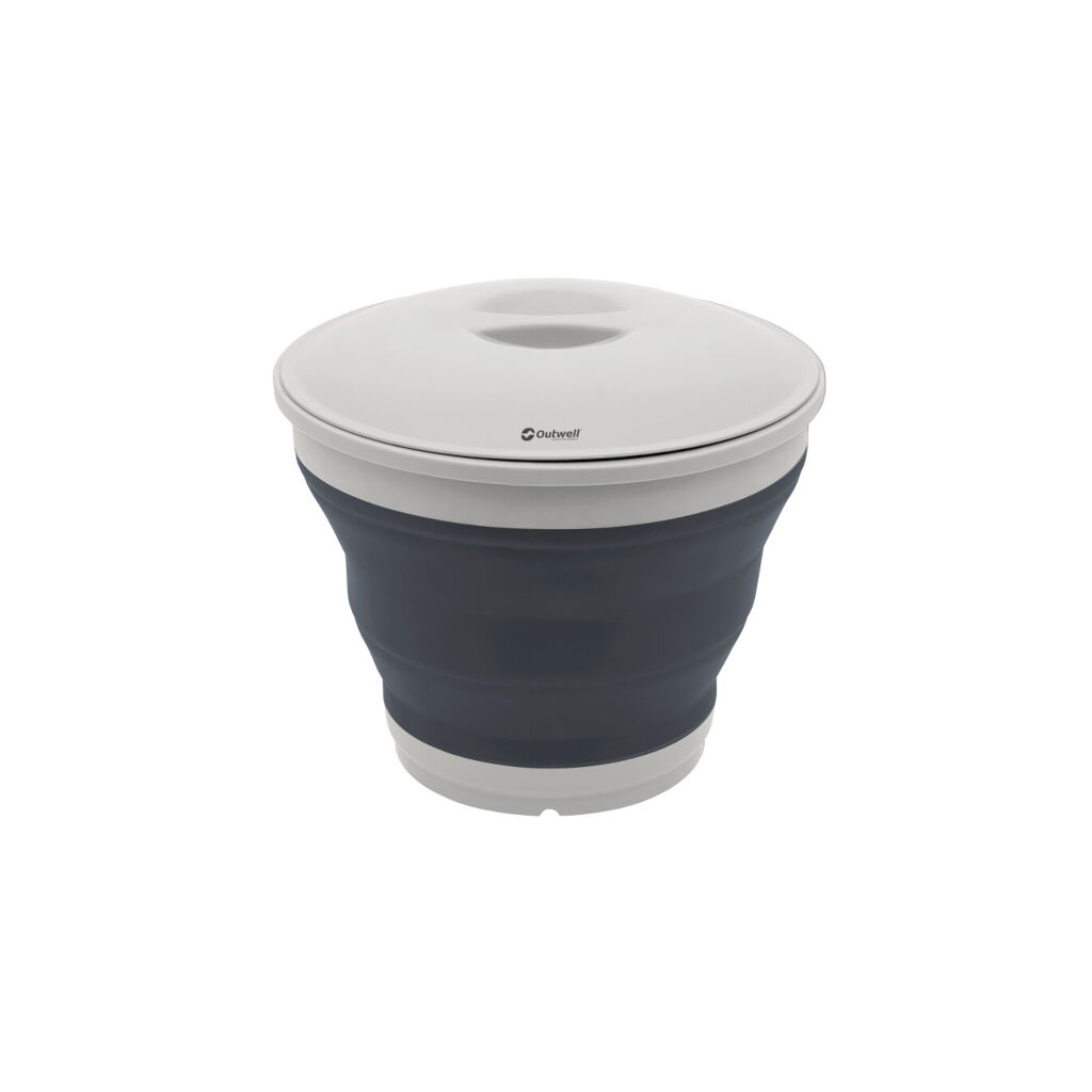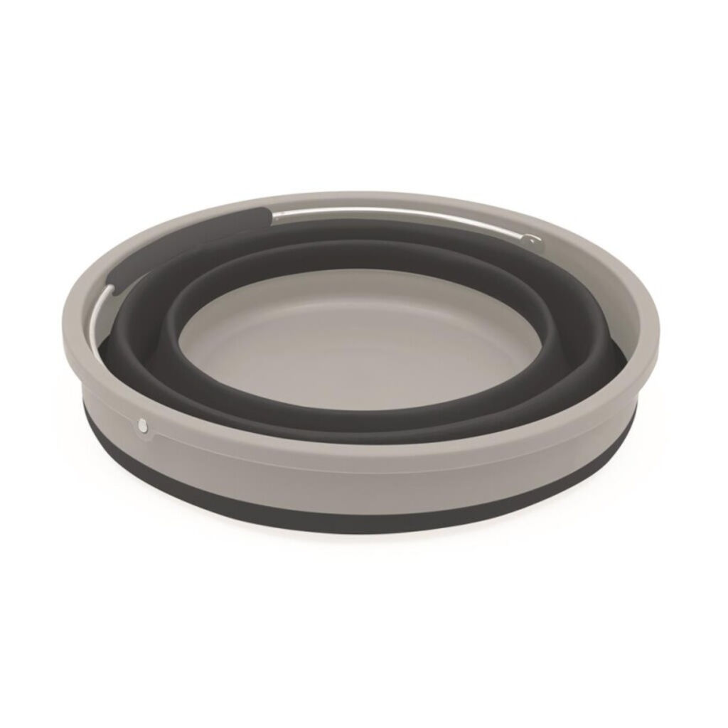 Smarter faltbarer Eimer, der auf eine Höhe von nur 5,5 cm zusammengepresst werden kann. Perfekt für den Campingurlaub.