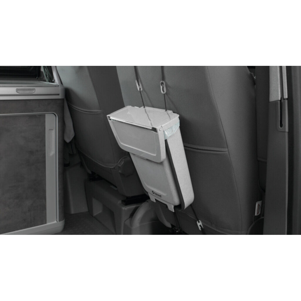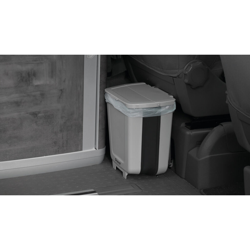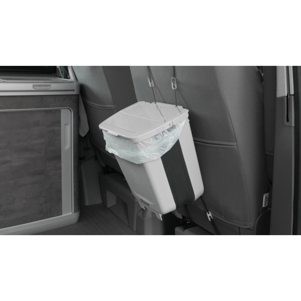 Praktischer und zusammenklappbarer Mülleimer mit 8 L, der dank der mitgelieferten Befestigungsriemen und Haken entweder an Deck, Rückenlehne usw. befestigt werden kann.