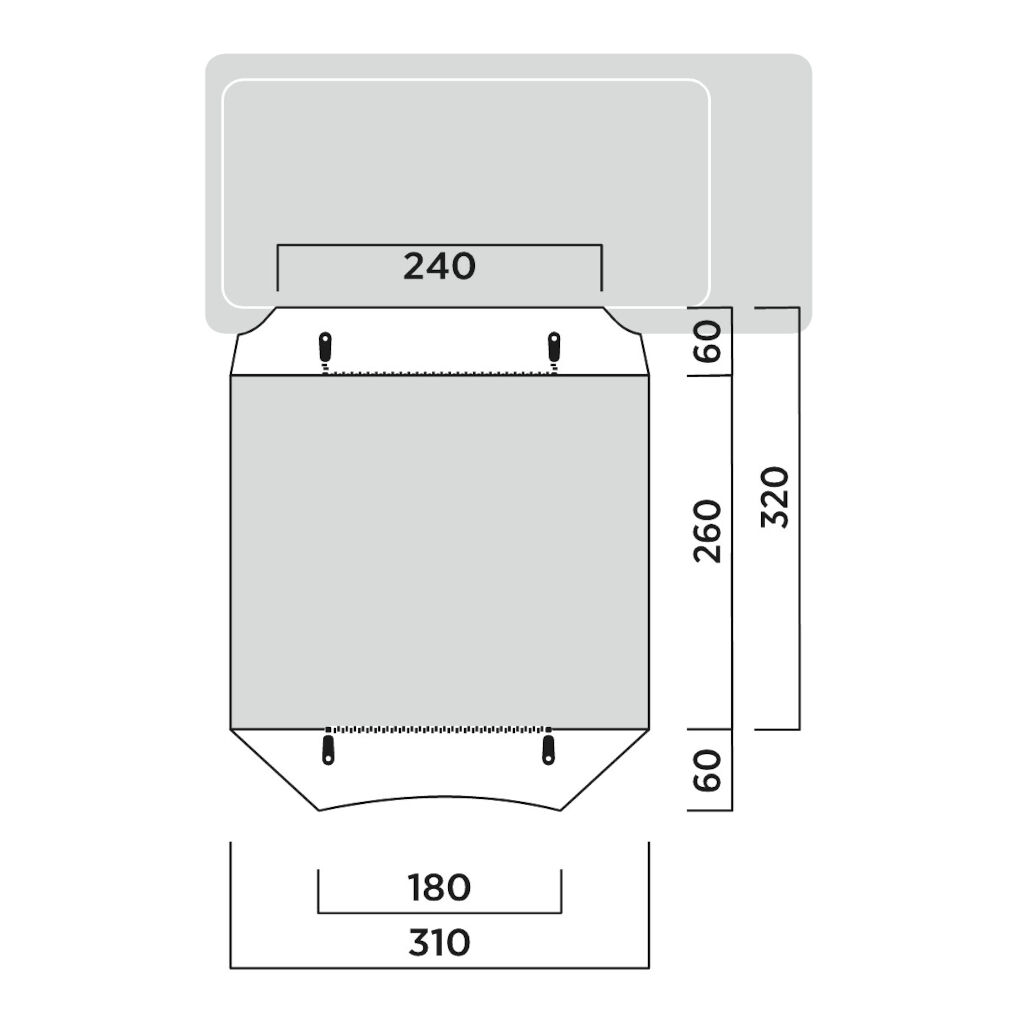 Das Zeltmaterial ist vollständig wasserdicht mit getapten Nähten. Die Schleuse kann über eine Kederleiste, Schienen oder mit Abspannleinen über das Fahrzeug befestigt werden. Dank guter Belüftung, aufrollbarer Vorhänge und einer fixierbaren Bodenplane im Wannenstil entsteht ein komfortabler und geschützter zusätzlicher Raum beim Camping.