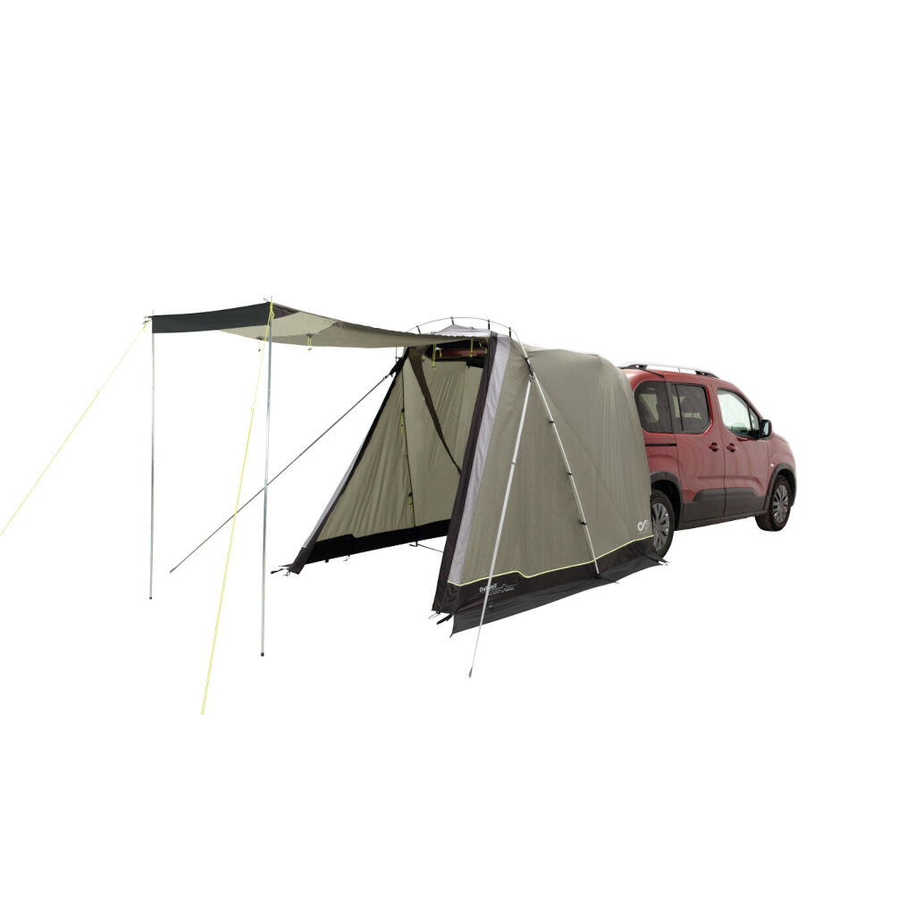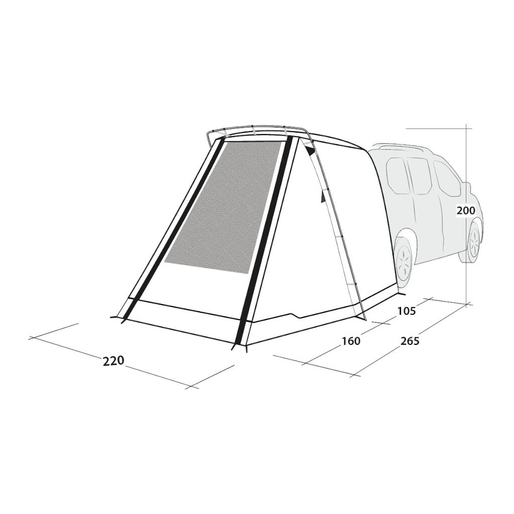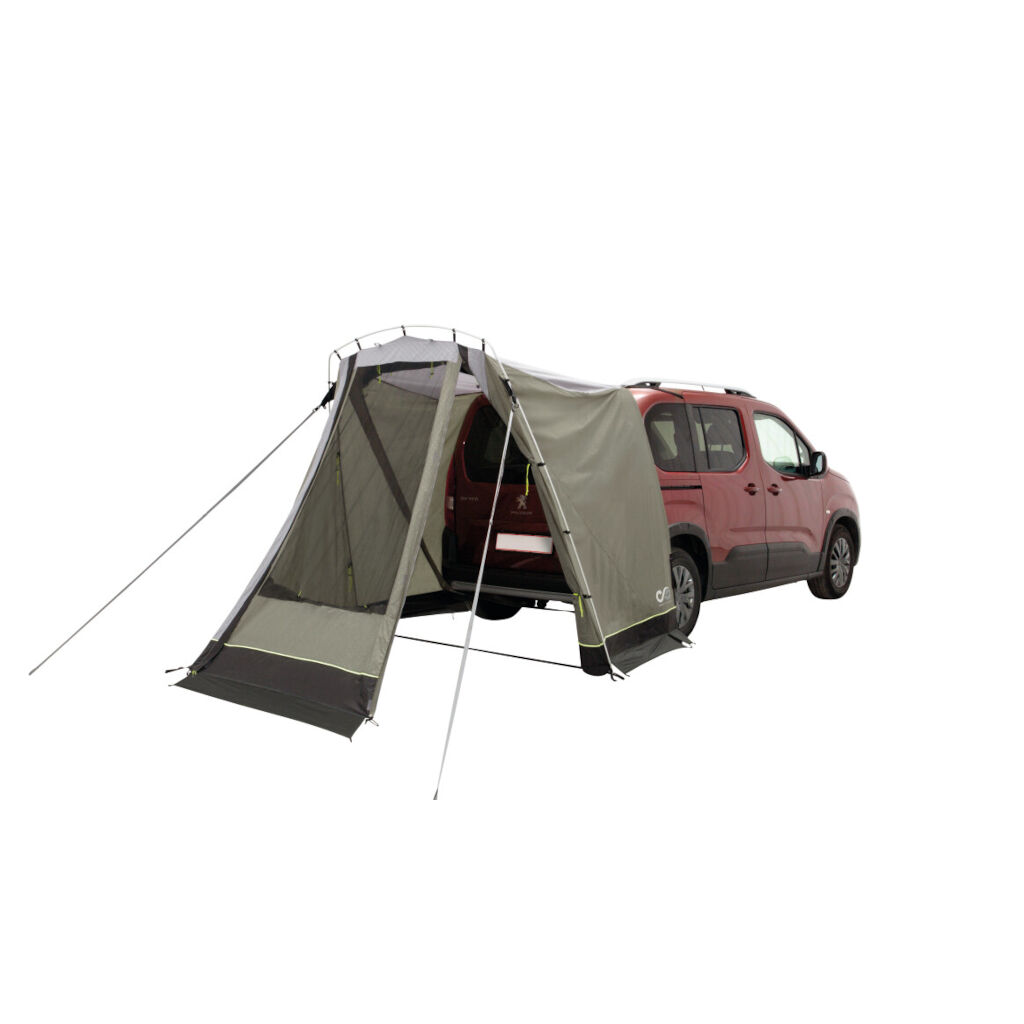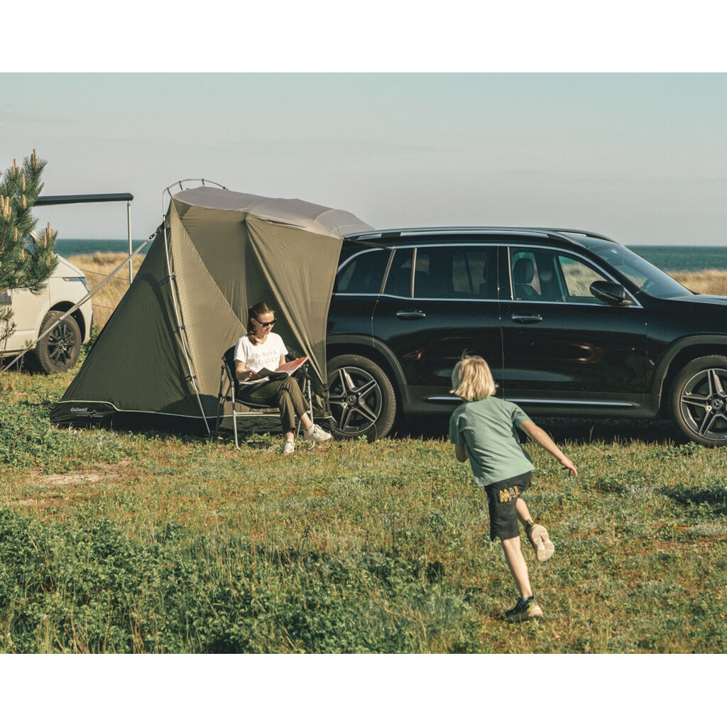 Outwell Sandcrest S ist ein Heckklappenzelt, das so konzipiert ist, dass es an der Rückseite eines SUVs oder Minivans angebracht wird. Perfekt, um zusätzlichen Raum für das Kochen, die Ausrüstung oder zum Sitzen unter einem Dach zu schaffen. Eine aufklappbare Mesh-Wand in der Mitte ermöglicht es, im Auto mit geöffneter Heckklappe zu schlafen, geschützt vor Insekten. Das Zelt ist packfreundlich und dank eines robusten Tuchs und einer stärkeren Aluminiumstange sehr strapazierfähig. Die Befestigung am Auto ist flexibel und ohne störende Seile, die im Weg sind. Dies ist dank Befestigungen möglich, die an den Autotüren, den Hinterrädern sowie mit verstellbaren Bodenbefestigungen gespannt werden. Dadurch passt es zu den meisten Autos mit einer Höhe zwischen 155 und 185 cm.