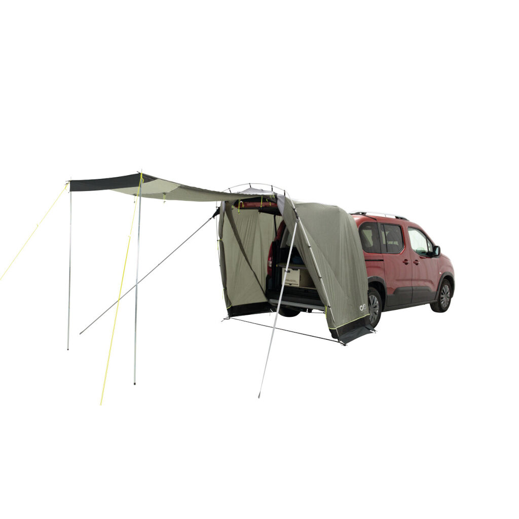 - Die Heckklappe des Fahrzeugs kann innerhalb des Vorzelts geöffnet werden, wenn es montiert ist