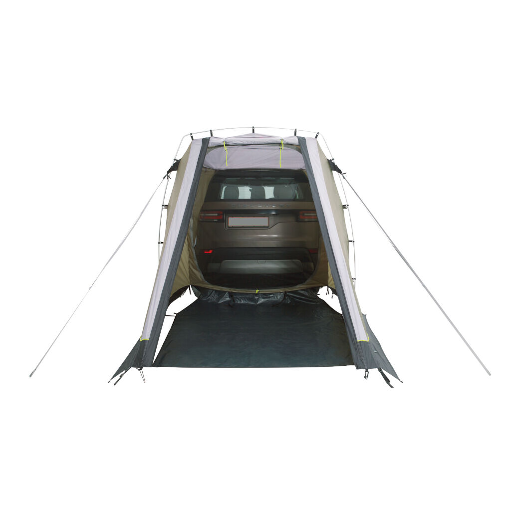 Geben Sie dem Auto zusätzlichen Raum für Ausrüstung, Kochen oder zum Sitzen. Das Outwell Sandcrest ist ein sehr leichtes, robustes und schnell aufzubauendes Autodachzelt, das an der Rückseite des Autos befestigt wird. Mit nur einer Aluminiumstange ist es einfach zu montieren und nimmt kaum Platz im Auto ein. Das Zelt wird über das Outwell-Fahrzeugbefestigungssystem angebracht und erfordert keine Kederleiste. Das Befestigungssystem ermöglicht es, die hinteren Türen ungehindert zu nutzen, auch wenn das Zelt montiert ist. Das Zelt passt zu den meisten Autos mit einer Höhe zwischen 155 und 185 cm. Es hat eine große Tür, die auch als Sonnendach aufgespannt werden kann (Zubehör kann erforderlich sein), was es einfach macht, an warmen Tagen zu öffnen. Die abgeschrägte, öffnungsfähige Trennwand aus Mesh ermöglicht es, im Auto mit offener Heckklappe zu schlafen, geschützt vor Insekten. Perfekt für warme Nächte oder um die Temperatur im Auto am Morgen niedrig zu halten.