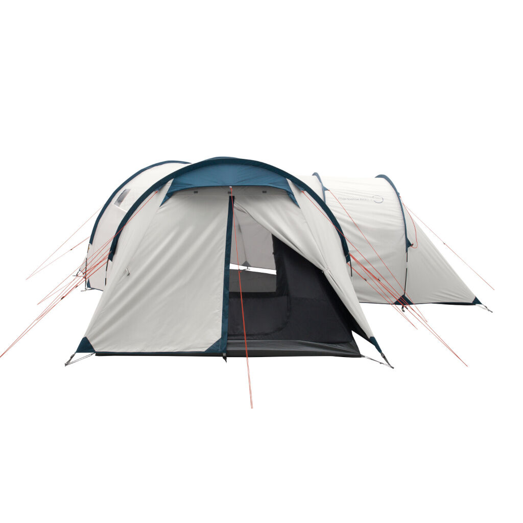 Familienzelt mit Wohnzimmer und zwei separaten Schlafkabinen mit flexiblen Eingängen. Ein geräumiges Wohnzimmer bietet Platz zum Einrichten und geselligen Beisammensein, und die zwei dunklen Sleeptight+ Schlafkabinen schützen vor Morgensonne und bieten Platz für jeweils drei Personen. Ein großer Eingang vorne und zusätzliche Eingänge hinten an den jeweiligen Schlafkabinen bieten gute Möglichkeiten zum Einrichten und ermöglichen es, das Zelt zu betreten und zu verlassen, ohne die Schlafenden in der anderen Schlafkabine zu stören. Das Zelt hat eine Plane, die regen- und windbeständig ist, sowie farbcodierte Stangen für einen einfachen Aufbau. Perfekt für Familien mit älteren Kindern, die einen eigenen Rückzugsort wünschen, oder für zwei Gruppen, die sich ein Zelt teilen möchten.