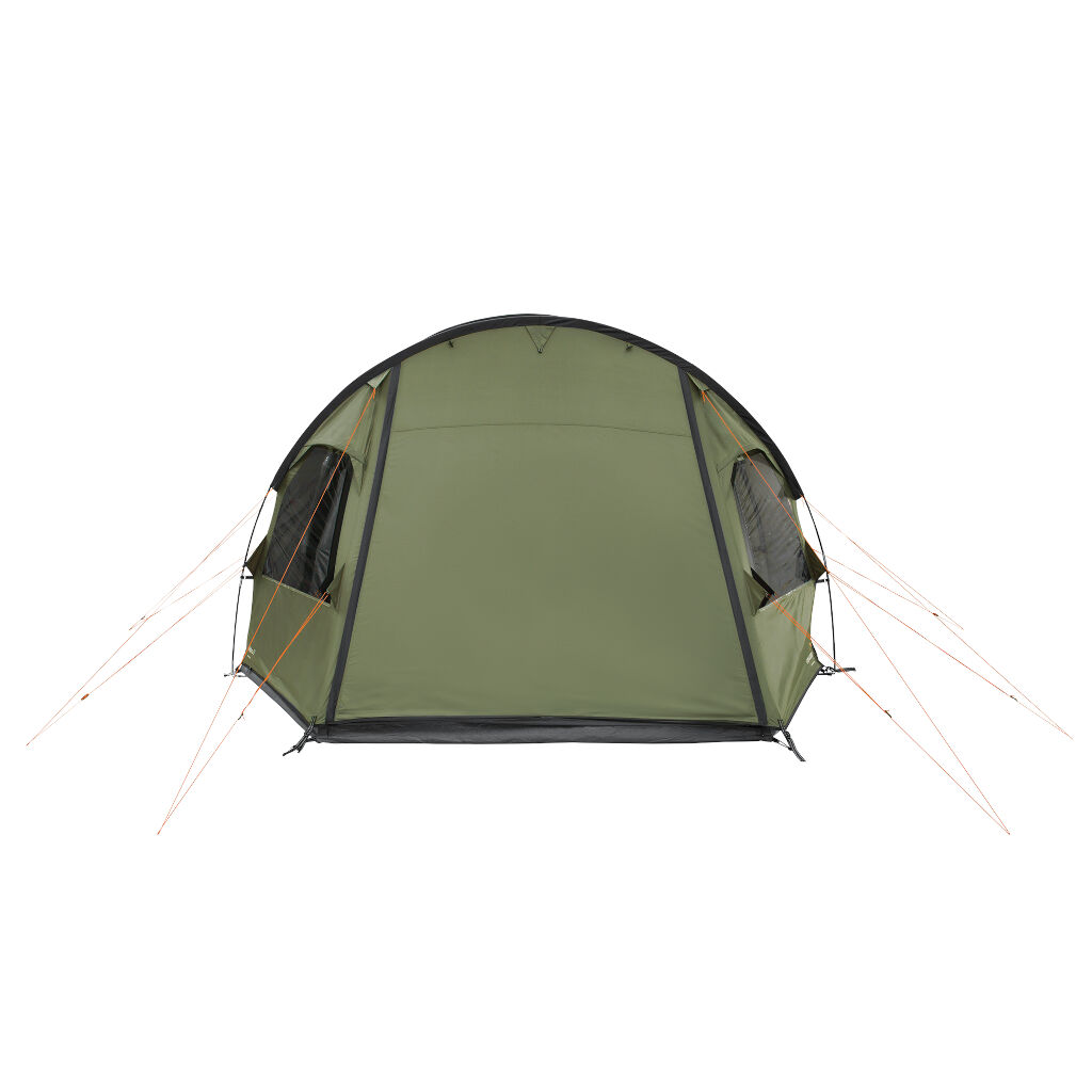 Die Zeltplane ist vollständig wasserdicht mit verklebten Nähten und zudem flammhemmend. Die Gestänge bestehen aus Fiberglas und sind farbcodiert, um den Aufbau zu erleichtern.