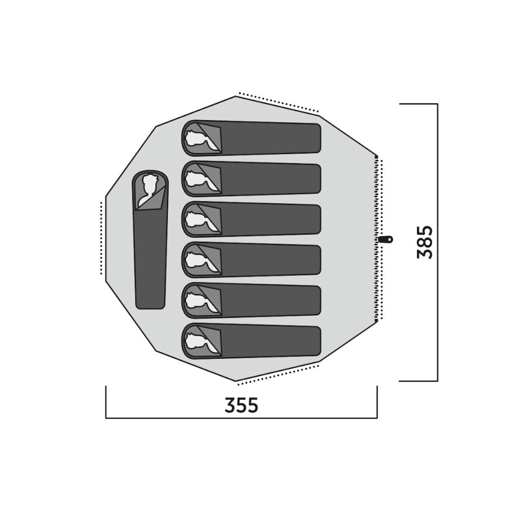 - Geschützter Dachventil und breite, verstellbare Lüftungsöffnungen unten sorgen für einen guten Luftstrom durch das Zelt