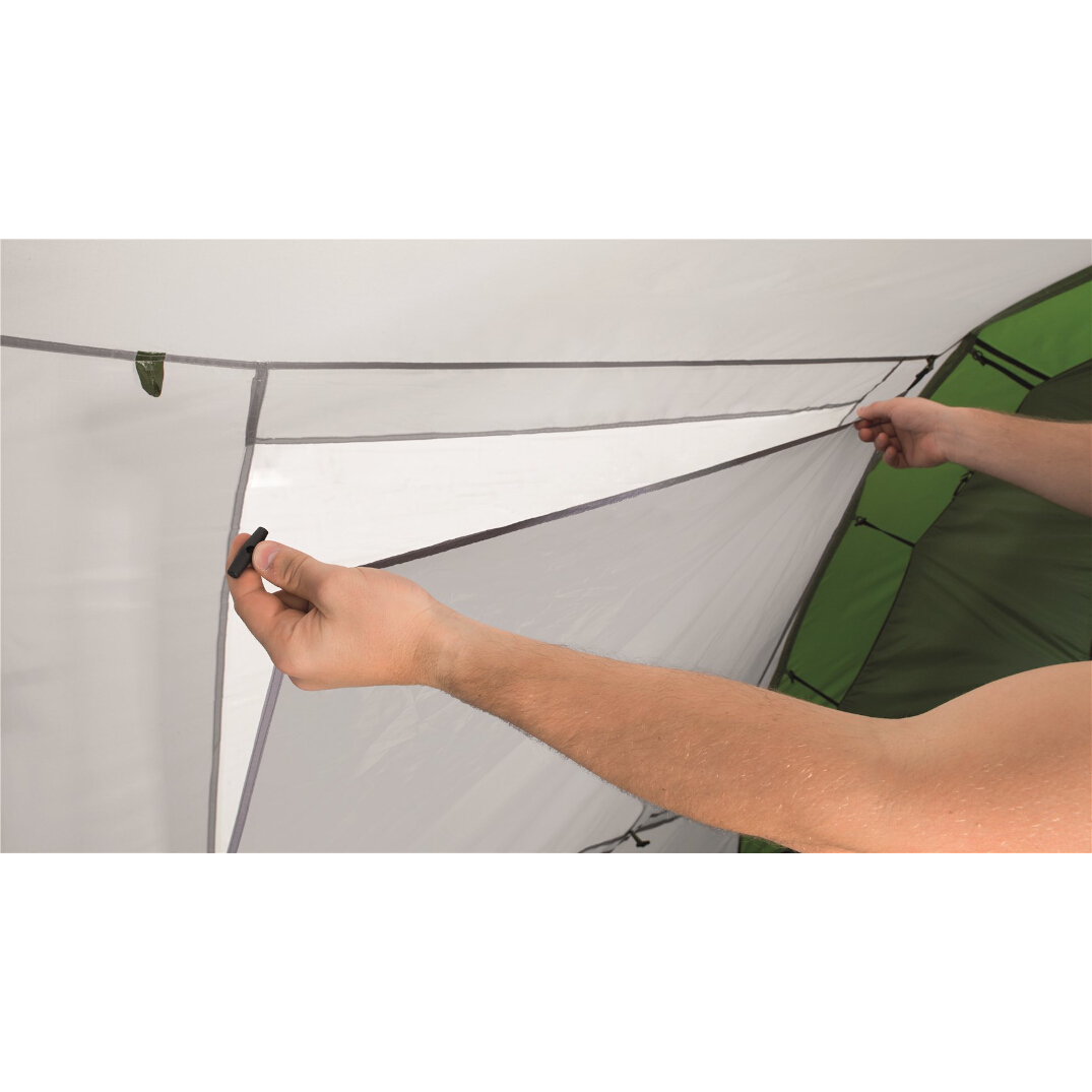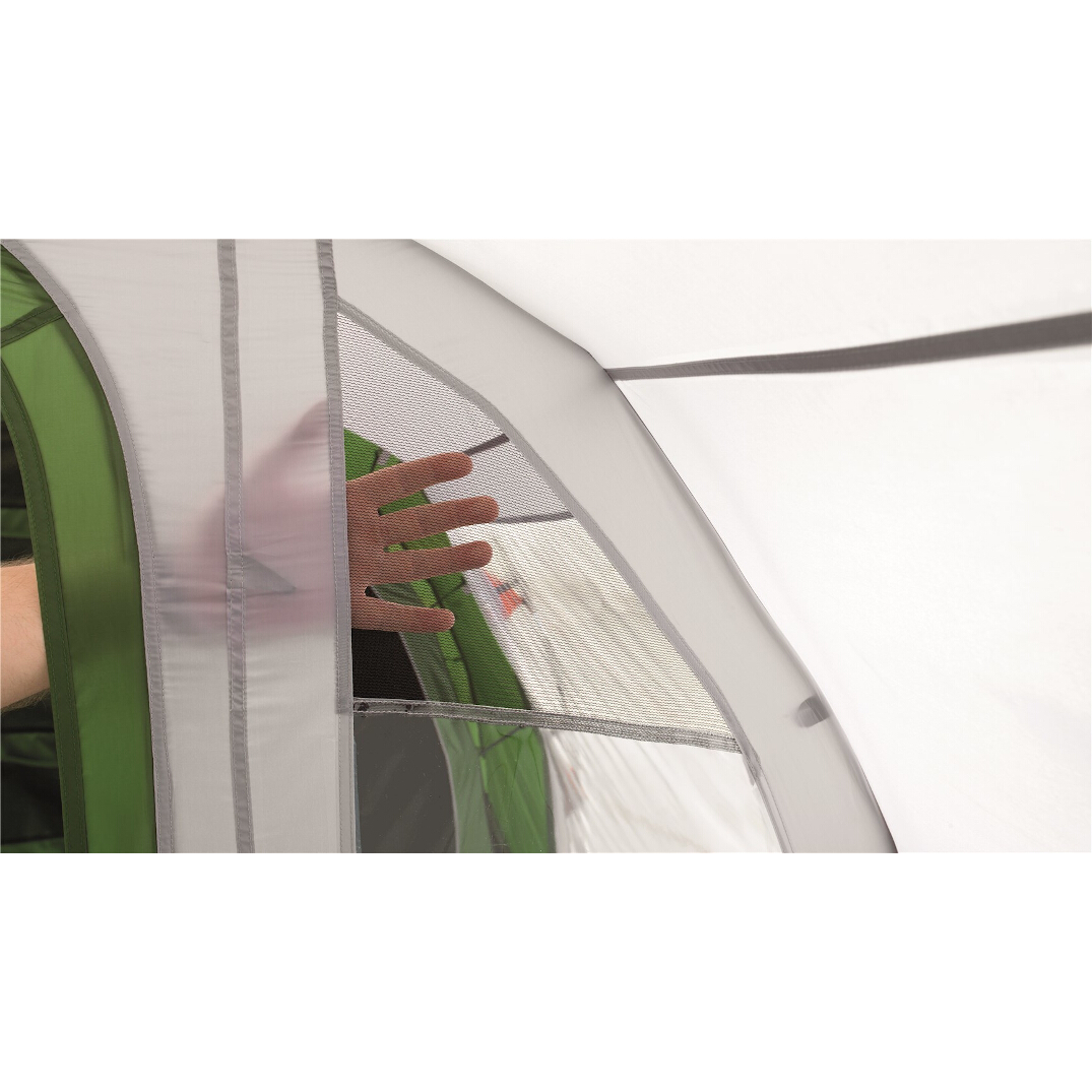 Easy Camp Palmdale 300 ist ein geräumiges Zelt für Paare oder kleine Familien mit bis zu drei Personen. Fester Boden, große Fenster, gute Plane, der Sonnenschutz vorne in Kombination mit dem Preis machen es zu einem perfekten Zelt für diejenigen, die neu im Zeltcamping sind oder ein zuverlässiges und preiswertes Familienzelt benötigen. Die Belüftung des Familienzeltes ist mit einem großen, verstellbaren Ventil hinter der Schlafkabine und zwei verstellbaren Ventilen vorne gut dimensioniert. Die Tür vorne kann ebenfalls komplett geöffnet werden, um zusätzlichen Luftstrom zu schaffen. Der Sonnenschutz vorne bietet einen guten Schutz vor Regen und Wind für den Eingang, erleichtert das Kochen bei schlechtem Wetter und bietet etwas zusätzlichen Schatten an warmen Tagen. Er kann auch gut zur Aufbewahrung von Schuhen, Spielzeug oder Ausrüstung genutzt werden.