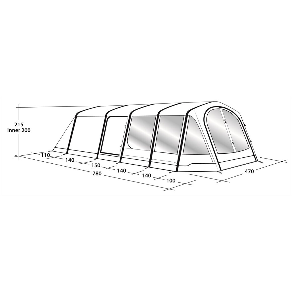 Drei abgedunkelte Schlafzimmer, zwei helle Aufenthaltsräume mit einer Deckenhöhe von 215 cm und flexible Öffnungen bieten fantastischen Komfort. Mit Smart Air Luftkanälen wird das gesamte Zelt über zwei Ventile aufgepumpt, was den Aufbau sehr einfach macht. Robuste Zeltplane, Verstärkungen an exponierten Stellen verleihen einem Familienzelt eine wirklich gute Leistung.