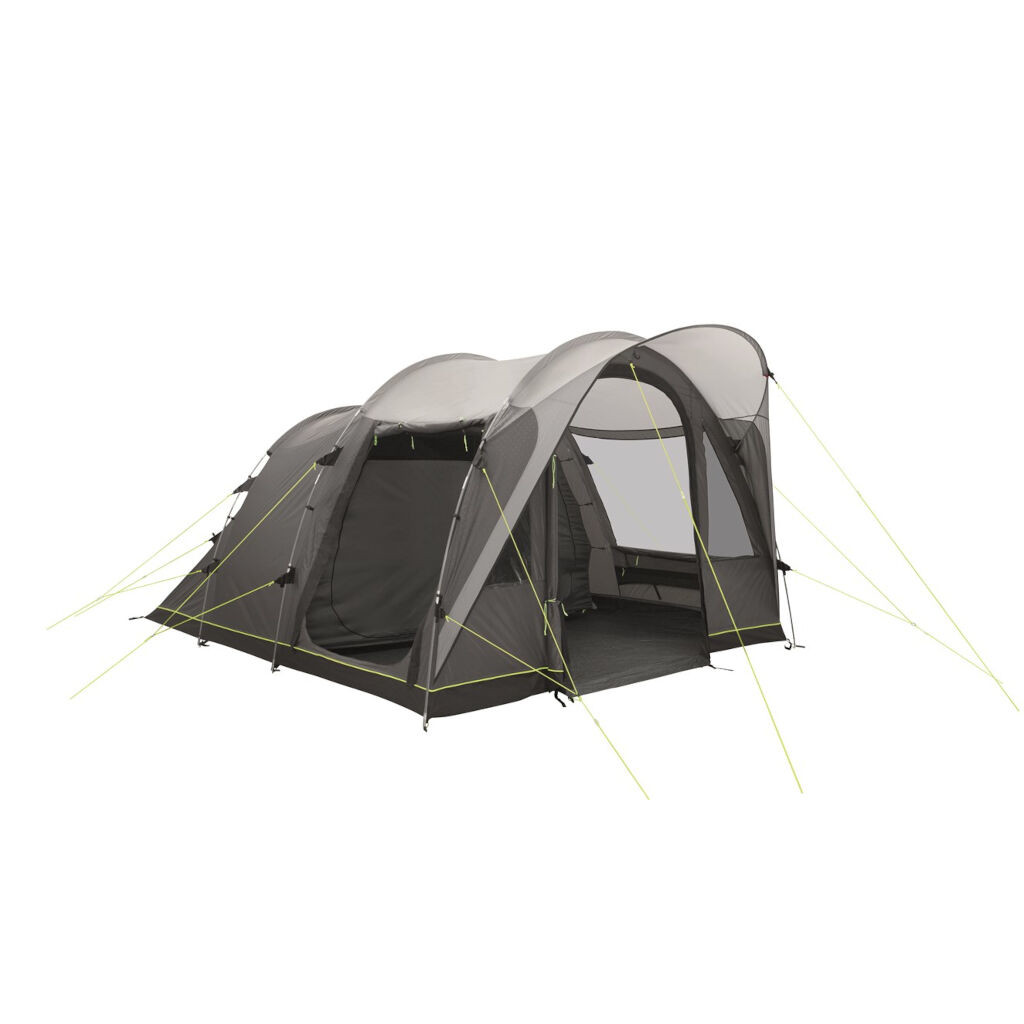 Outwell Lawndale 4 ist ein Familienzelt, das für Gruppen bis zu vier Personen geeignet ist, wobei sowohl die Schlafkabine als auch das Wohnzimmer viel Platz bieten. Das Design des Zeltes erinnert am meisten an eine Hütte mit einem überstehenden Dach, das die Tür vor Regen und Sonne schützt. Das kleine Dach kann auch zur Aufbewahrung von Schuhen, Spielzeug oder Ausrüstung genutzt werden.